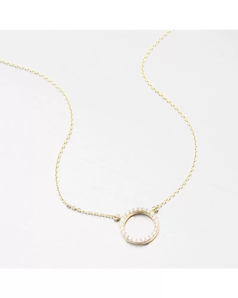 Zlatý náhrdelník kruh se zirkony – symbol elegance a nekonečna. Jemnost, která zaujme na první pohled. Tento zlatý náhrdelník s motivem kruhu představuje dokonalost, jednotu a nekonečno – hodnoty, které nikdy nevyjdou z módy. Zdobí ho precizně broušené zirkony, které se třpytí s každým pohybem a dodávají šperku luxusní vzhled.