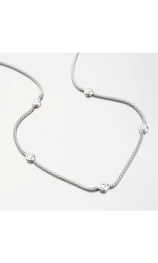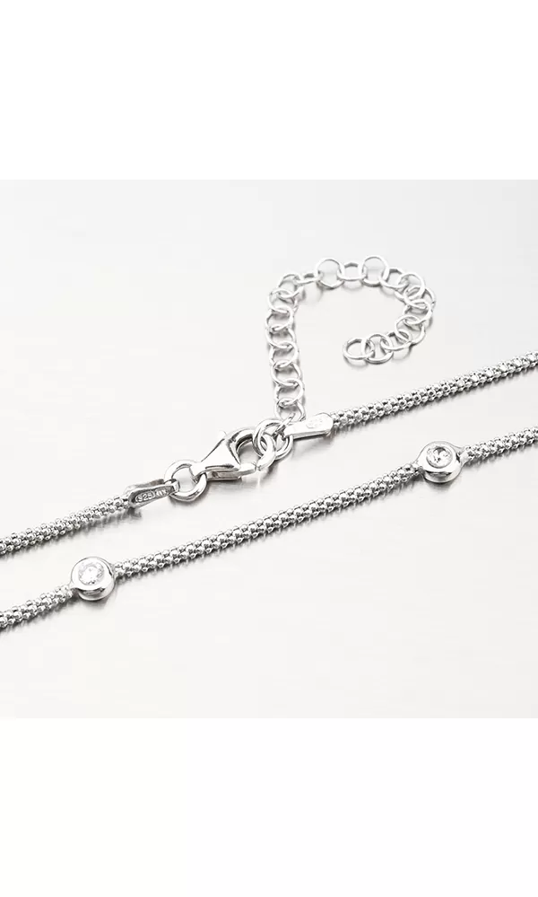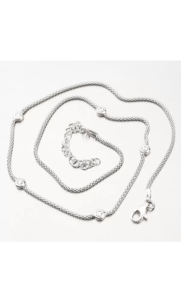 Náhrdelník je vyroben ze stříbra o ryzosti 925/1000 v lesklé povrchové úpravě s rhodiováním. Rhodium je ušlechtilý drahý kov ze skupiny platinových kovů. Rhodiováním stříbrných šperků galvanickým nanášením tohoto drahého kovu se stává povrch šperku tvrdší, stálejší a odolnější vůči vnějším vlivům jako je mechanický otěr, poškrábání, nabíhání stříbra, lidský pot, kosmetické přípravky a další. Rhodium je antialergické.