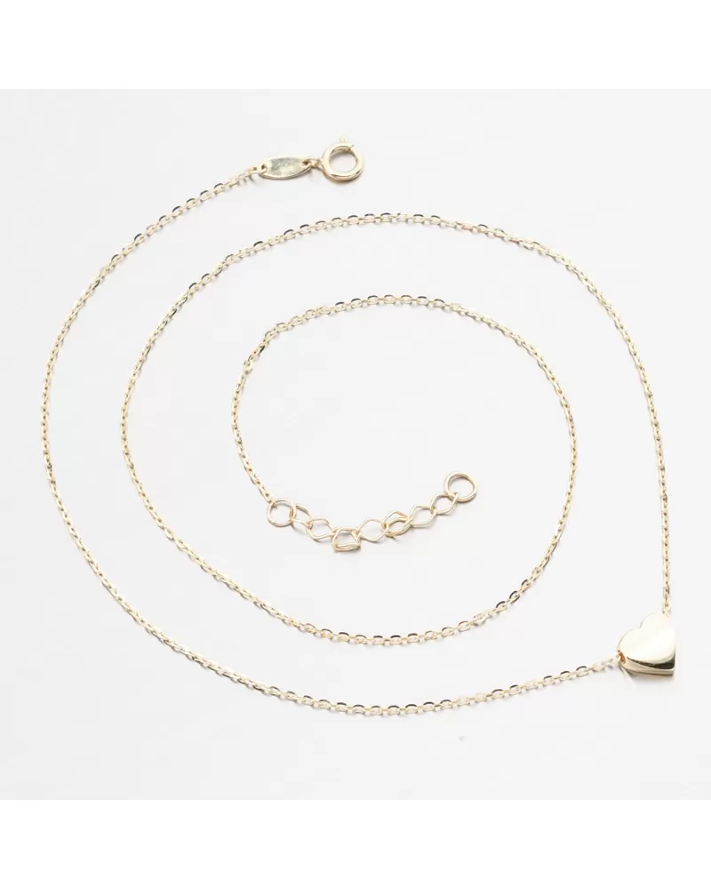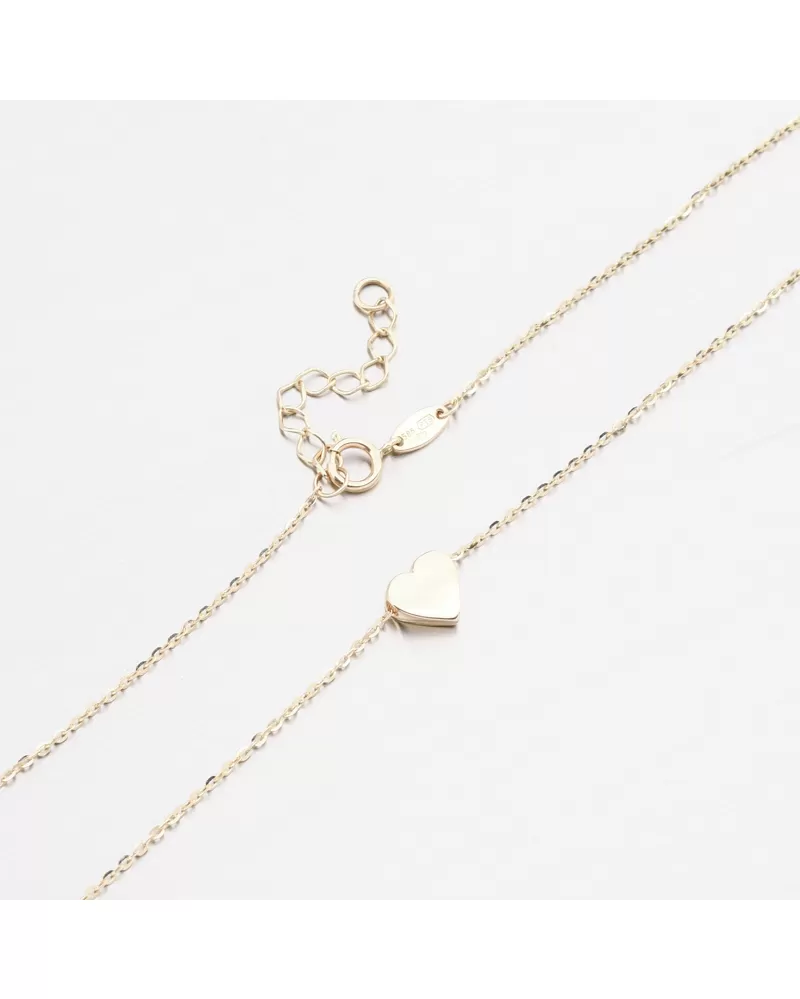 Zlatý náhrdelník, který zaujme svou jemností a jednoduchostí. Náhrdelník je tvořen řetízkem typu Anker, který je zdoben zářivými facetami. Facety jsou zhotoveny diamantovým nástrojem, který dodává vzniklým facetám maximální lesk, díky kterému dokonale odráží světlo a mají krásnou brilanci ze všech úhlů pohledu. Skrz řetízek je provlečený krásný přívěsek ve tvaru srdíčka. Srdce je ve vysokém lesku. Tímto náhrdelníkem zaručeně potěšíte milovanou osobu.
