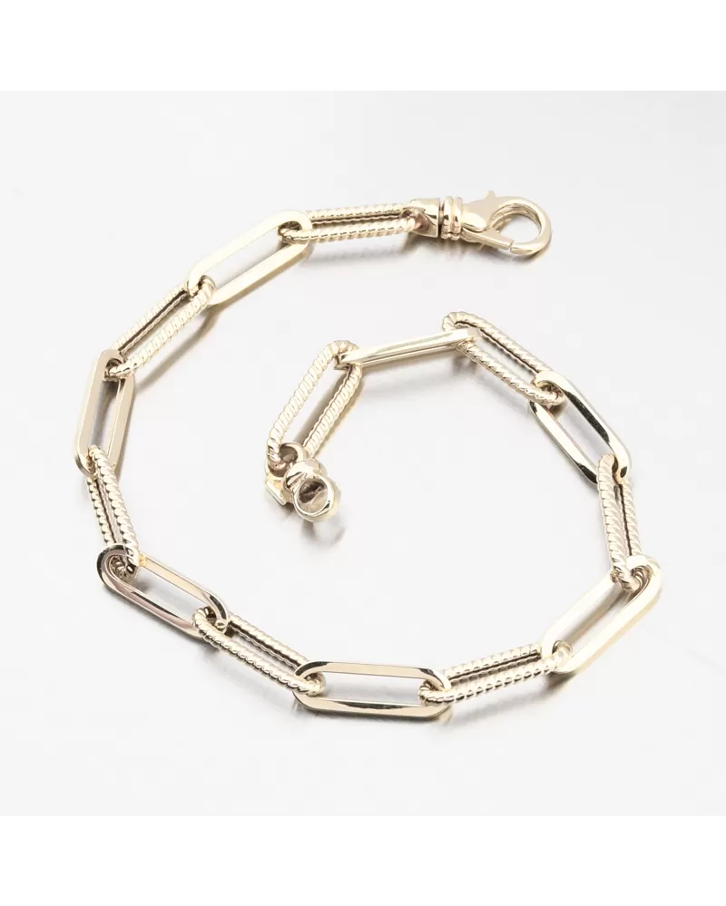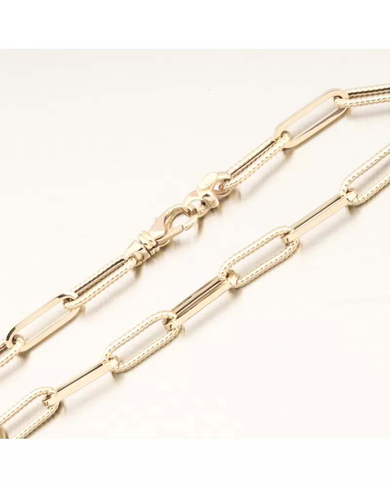 Tento stylový náramek ze žlutého zlata spojuje moderní design s klasickou elegancí. Kombinace hladkých podlouhlých oček a jemně ozdobených, spirálově strukturovaných článků vytváří výrazný, ale zároveň nadčasový šperk, který vynikne při každém pohybu. Jedná se o dutý náramek, ktkerý je výhodný pro svou lehkost a vizuální větší objem za nižší cenu než masivní šperk. Duté šperky vyžadují opatrnější zacházení a obezřetnost při nošení aby nedošlo k jejich deformaci.