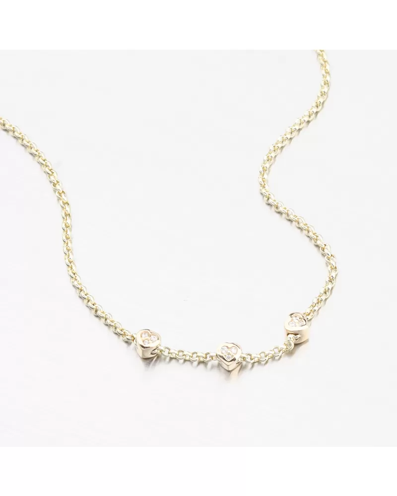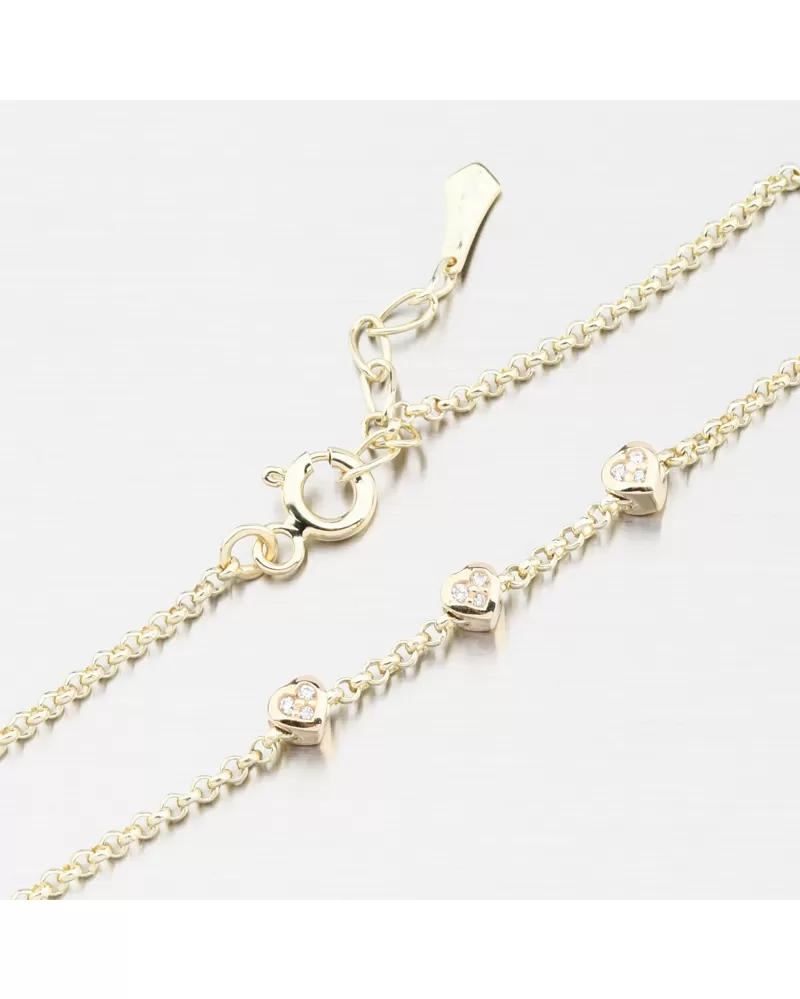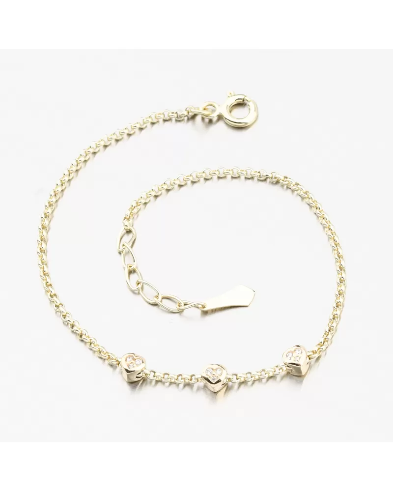 Krása je v detailech. Tento jemný zlatý náramek zdobí tři drobná srdíčka, každé osazené broušenými zirkony, které dodávají šperku romantickou jiskru. Symbolizují lásku, radost a výjimečné okamžiky, které stojí za připomenutí. Zirkony jsou briliantového brusu, který zajišťuje maximální brilanci vybroušených facet, dokonale odráží světlo a neuvěřitelně září z každého úhlu pohledu.