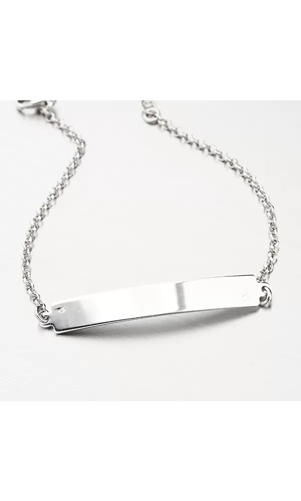 Elegantní náramek s destičkou, která je zdobena drobným zirkonem. Řetízek je typu Anker a je zdobený facetami. Facety jsou zhotoveny diamantovým nástrojem a dodávájí náramku maximální lesk, díky kterému dokonale odráží světlo a mají krásnou brilanci ze všech úhlů pohledu! Na destičku je možné vyrýt Vámi vybraný text jako je například jméno, datum narození - popis rytiny uveďte do kolonky speciální požadavky.