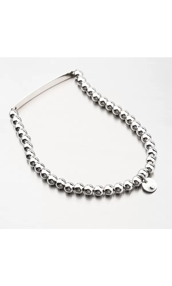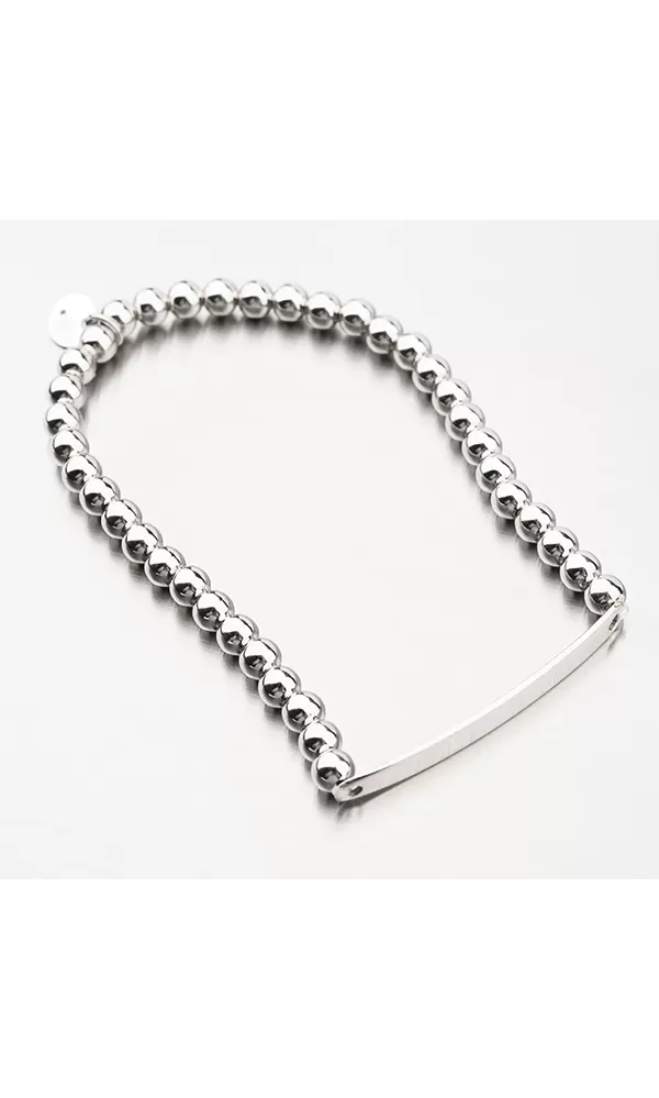 Krásný náramek s kuličkami, který je bez zapínání a je pružný, aby se dal lehce nasadit a byl příjemný na nošení. Na přední nebo zadní stranu destičky, je možno vyrýt Vámi vybraný text jako je např. jméno, přezdívka nebo datum. Popis rytiny prosím uveďte v kolonce speciální požadavky.