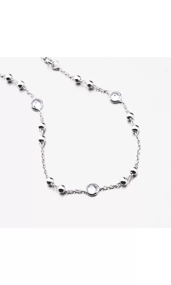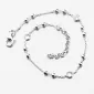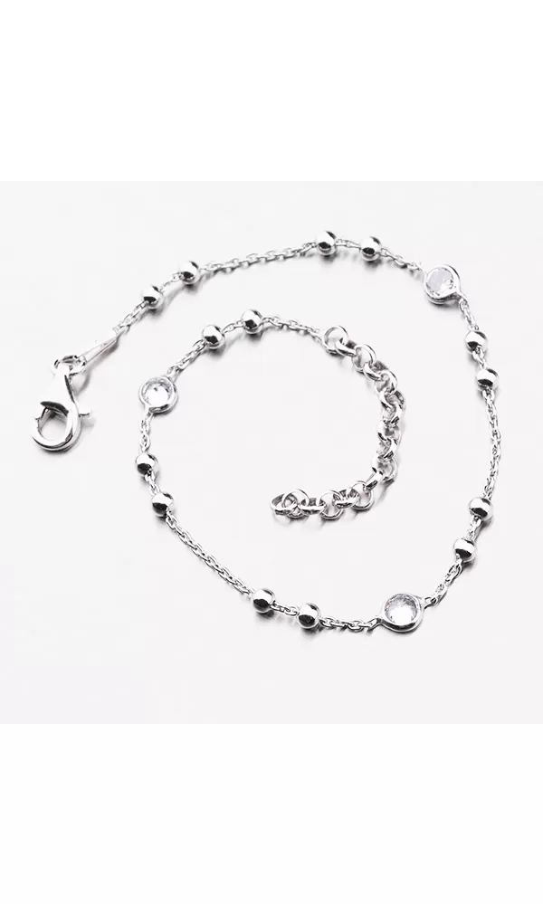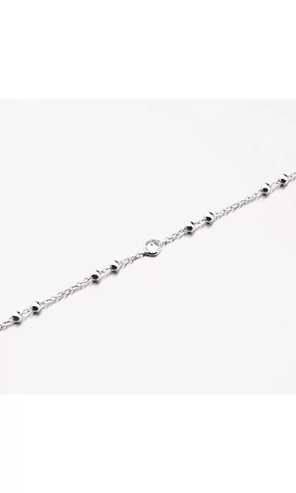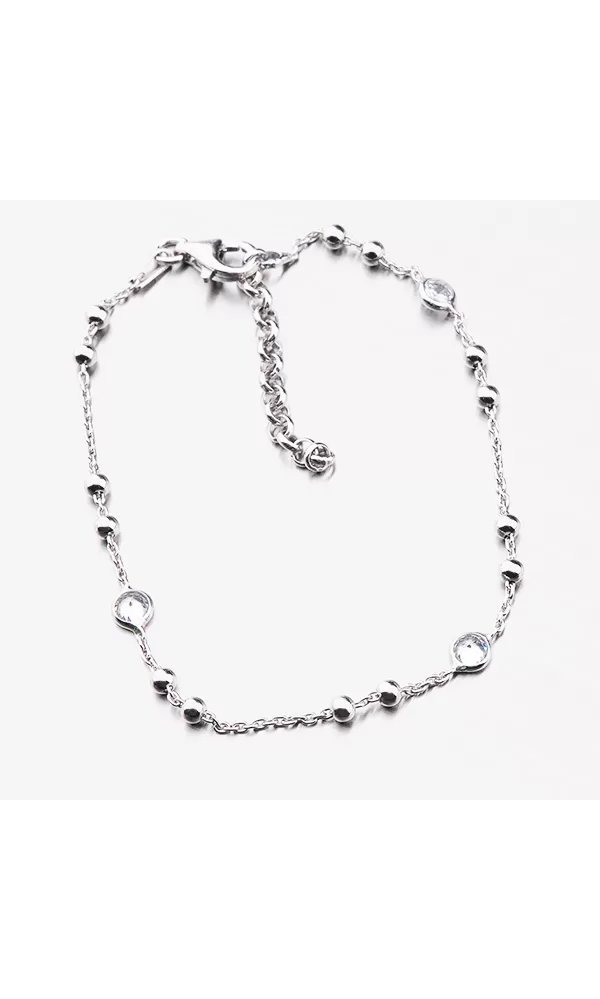 Něžný náramek je zdoben kuličkami a zirkony v briliantovém brusu. Délka náramku je 17 cm, s využitím řetízku 3 cm, je možné náramek zapnout v délce 17 až 20 cm. Náramek je vyrobený ze stříbra o ryzosti 925/1000 v lesklé povrchové úpravě a povrch náramku je zušlechtěn rhodiováním.  Náramek se zapíná na karabinu.