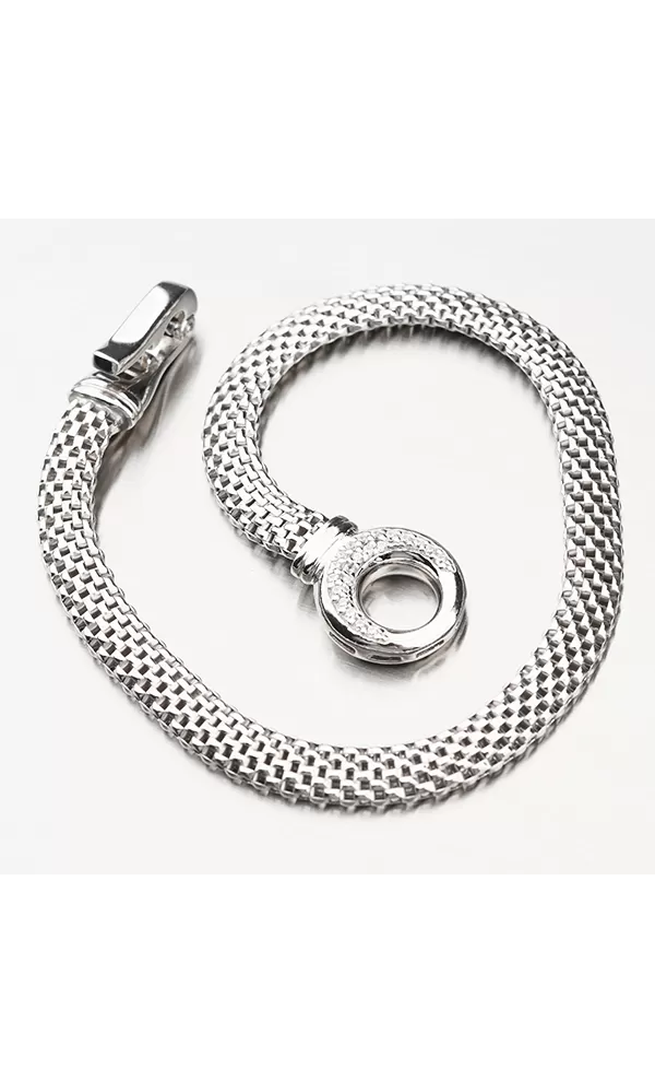 Moderní náramek je vyroben ze stříbra o ryzosti 925/1000 a je zušlechtěn rhodiováním. Rhodium je ušlechtilý drahý kov ze skupiny platinových kovů. Rhodiováním stříbrných šperků galvanickým nanášením tohoto drahého platinového kovu se stává povrch šperku tvrdší, stálejší a odolnější vůči vnějším vlivům jako je mechanický otěr, poškrábání, nabíhání stříbra, lidský pot, kosmetické přípravky a další. Rhodium je antialergické.