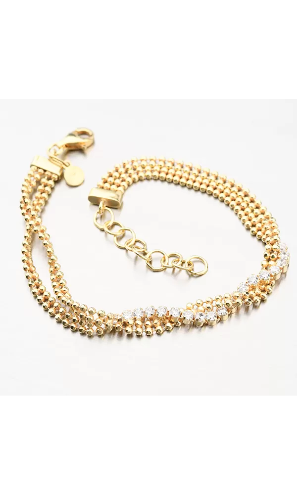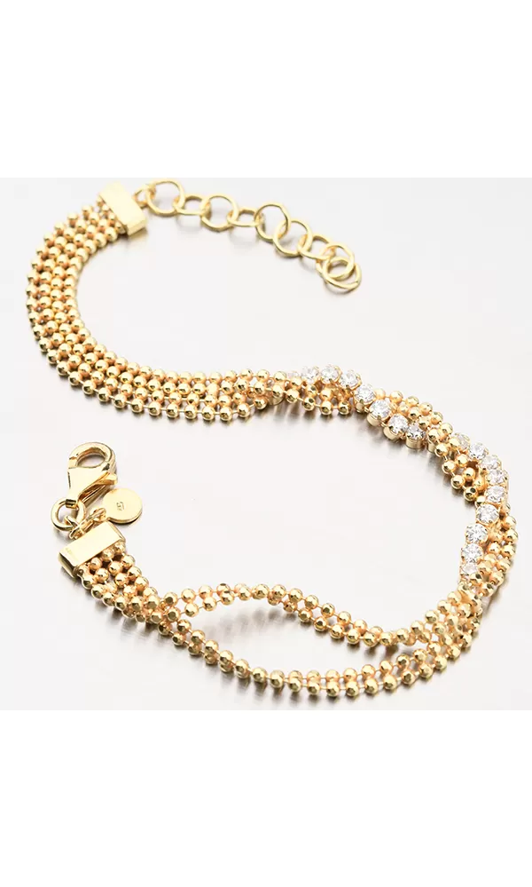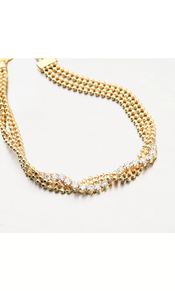 Elegantní náramek v provedení s drobnými kuličkami a ve středu náramku je navíc náramek mírně zakroucený a osazený zářivými zirkony v briliantovém brusu.