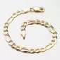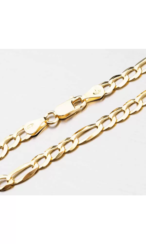 Pánský stříbrný pozlacený náramek Figaro patří mezi oblíbené šperky. Je totiž nejen krásný a stylový ale také praktický. Náramek je hladký a krásně přilne na vašem zápěstí takže nebudete zadrhávat. Pro muže dokonalý šperk, který je efektní a pohodlný. Tento náramek je zajímavý žlutou barvou zlata, kterou mu dodává technika zlacení PVD. Předností zlacení technologií PVD je vysoká tvrdost a odolnost proti otěru! Jedná se o silnou vrstvu, která proniká do původního materiálu. Zlacení technologií PVD se dá srovnat s přibližně 6 mikrony galvanického zlacení, což je vysoká hodnota, která při běžném nošení vydrží až několik let. Náramek je vyrobený ze stříbra o ryzosti 925/1000 v lesklé povrchové úpravě. Stříbrný náramek zapnete masivní karabinou.