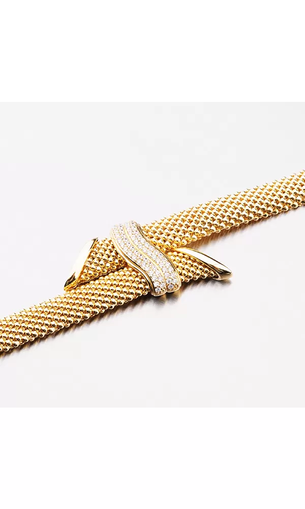 Extravagantní šperk pro odvážné ženy vám dokonale ozdobí zápěstí. Náramek je masivní a zdoben je zirkony v briliantovém brusu. Žlutou barvu zlata mu… Celý popis