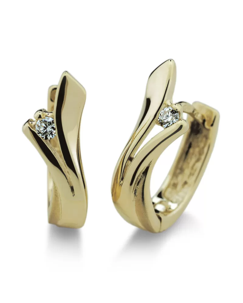 Elegance a jednoduchost. V tomto duchu se nese tento model náušnic. Náušnice zdobí dva kulaté diamanty. Diamanty jsou vybroušeny kulatým briliantovým brusem, který zajišťuje maximální brilanci vybroušených facet, dokonale odráží světlo a neuvěřitelné září z každého úhlu pohledu!  Tyto nádherné, zářivé náušnice jsou vyrobeny ze čtrnáctikarátového zlata - 585/1000 v lesklé povrchové úpravě.