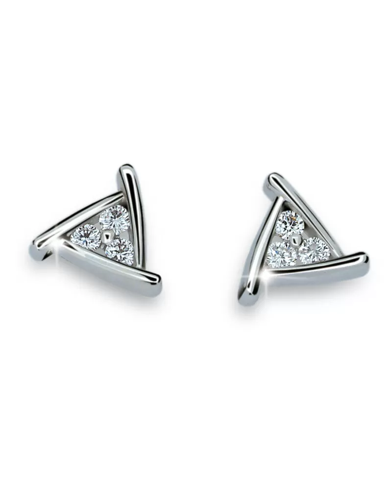 Elegance a jednoduchost. V tomto duchu se nese tento model náušnic. Náušnice ve tvaru trojúhelníku zdobí tři prvotřídní diamanty. Diamanty jsou vybroušeny kulatým briliantovým brusem, který zajišťuje maximální brilanci vybroušených facet, dokonale odráží světlo a neuvěřitelné září z každého úhlu pohledu!  Tyto nádherné, zářivé náušnice jsou vyrobeny z bílého čtrnáctikarátového zlata - 585/1000 v lesklé povrchové úpravě. Náušnice se zapínají na šroubek.