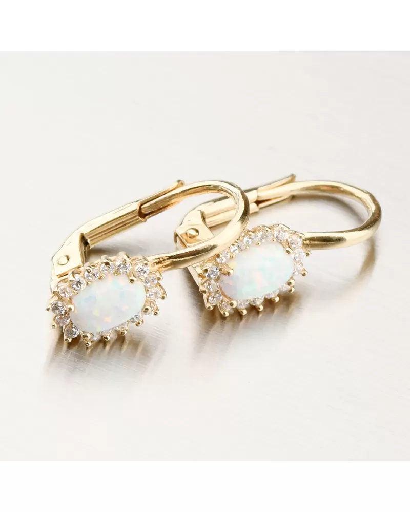 Tyto náušnice vás nadchnou. Na první pohled Vás zaujme oválný syntetický opál, který svými odstíny odzbrojí každou ženu. Bílý syntetický opál okouzlí jemným mléčným odstínem a krásnými duhovými odlesky. Dodá šperku jemnost, eleganci a magickou hru barev. Kolem opálu jsou vsazeny třpytivé bílé zirkony briliantového brusu. Tento brus propůjčuje kamenům brilanci pravých diamantů.