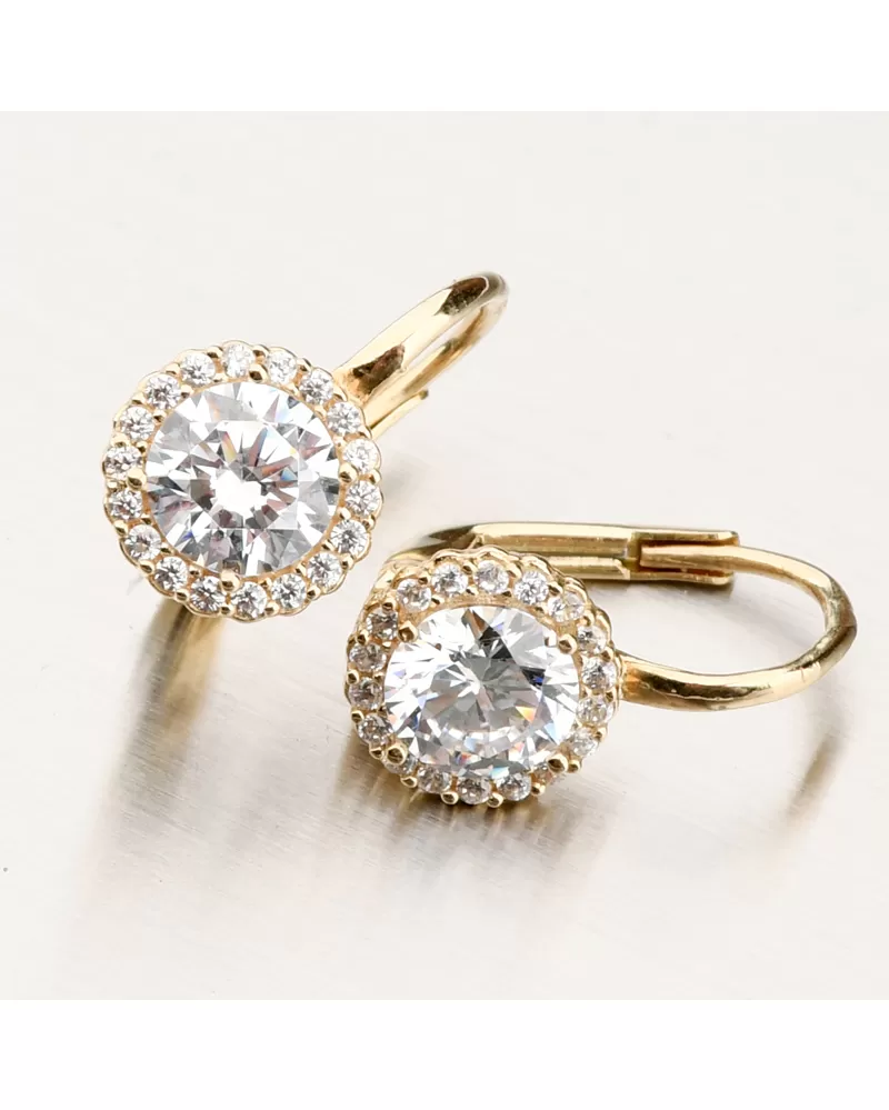 Tyto zlaté náušnice působí jako malé klenoty plné světla. Zářící centrální kámen obklopený jemnou třpytivou obrubou vytváří efekt dokonalého lesku, který rozzáří každou tvář. Elegantní a nadčasové – ideální pro výjimečné příležitosti i každodenní nošení. Zirkony jsou briliantového brusu, který zajišťuje maximální brilanci vybroušených facet, dokonale odráží světlo a neuvěřitelně září z každého úhlu pohledu.