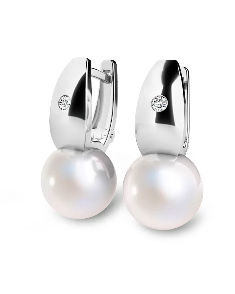 Nádherné dámské náušnice zdobené sladkovodní přírodní perlou a diamantem budou ideálním dárkem pro každou ženu. Perly jsou velmi oblíbené díky své eleganci a vzhledu, ale také proto, že darované perly nosí štěstí. Aby si perly zachovaly svůj půvab a krásu co nejdéle, je důležitá i péče. K uchování jejich krásy pomůže častější nošení, ne jen příležitostní. Tyto nádherné náušnice jsou vyrobeny z bílého čtrnáctikarátového zlata - 585/1000 v lesklé povrchové úpravě. V každé náušnici je zatepán "na hladko" jeden kulatý diamant, vybroušený kulatým briliantovým brusem, který zajišťuje maximální brilanci vybroušených facet ze všech úhlů pohledu! Vsazování diamantů provádějí naši nejzkušenější mistři zlatníci ručně pod mikroskopem s přesností na 0,01mm a proto nehrozí vypadnutí diamantů jako to bývá u strojně vyráběných šperků.