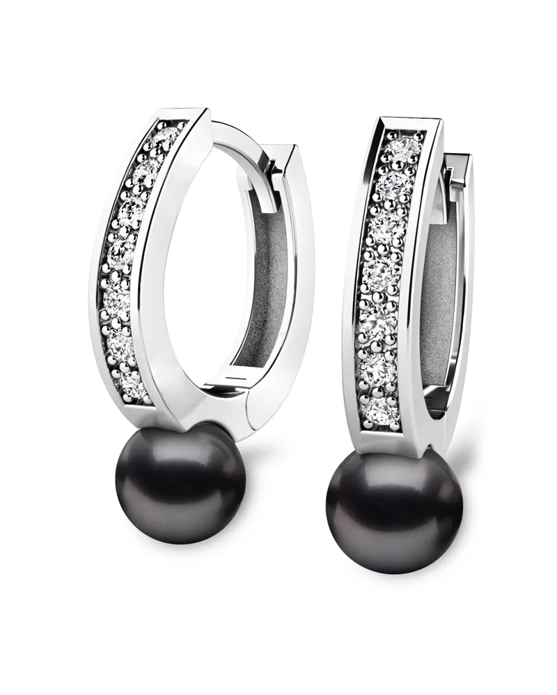 Nádherné dámské náušnice zdobené sladkovodní přírodní perlou černé barvy a diamanty budou ideálním dárkem pro každou ženu. Perly jsou velmi oblíbené díky své eleganci a vzhledu, ale také proto, že darované perly nosí štěstí. Aby si perly zachovaly svůj půvab a krásu co nejdéle, je důležitá i péče. K uchování jejich krásy pomůže častější nošení, ne jen příležitostní. Tyto nádherné náušnice jsou vyrobeny z bílého čtrnáctikarátového zlata - 585/1000 v lesklé povrchové úpravě. V náušnicích je vsazeno "do zrnek" čtrnáct kulatých diamantů, vybroušený kulatým briliantovým brusem, který zajišťuje maximální brilanci vybroušených facet ze všech úhlů pohledu! Vsazování diamantů provádějí naši nejzkušenější mistři zlatníci ručně pod mikroskopem s přesností na 0,01mm a proto nehrozí vypadnutí diamantů jako to bývá u strojně vyráběných šperků. Náušnice působí dokonalým a luxusním dojmem!