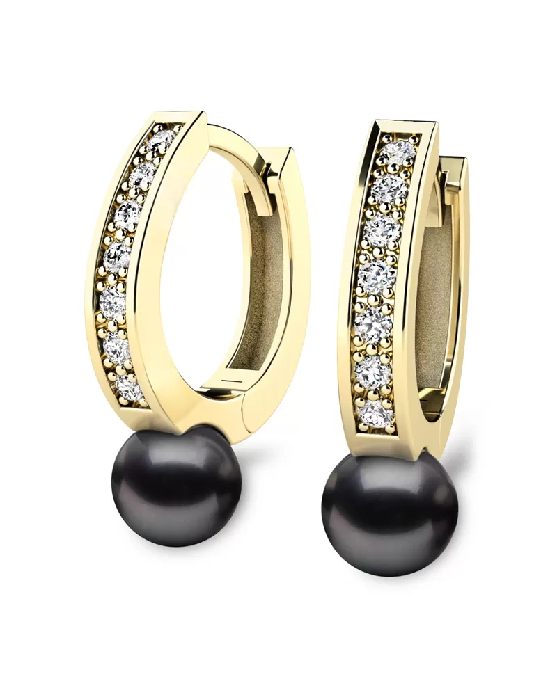 Nádherné dámské náušnice zdobené sladkovodní přírodní perlou černé barvy a diamanty budou ideálním dárkem pro každou ženu. Perly jsou velmi oblíbené díky své eleganci a vzhledu, ale také proto, že darované perly nosí štěstí. Aby si perly zachovaly svůj půvab a krásu co nejdéle, je důležitá i péče. K uchování jejich krásy pomůže častější nošení, ne jen příležitostní. Tyto nádherné náušnice jsou vyrobeny ze žlutého čtrnáctikarátového zlata - 585/1000 v lesklé povrchové úpravě. V náušnicích je vsazeno "do zrnek" čtrnáct kulatých diamantů, vybroušený kulatým briliantovým brusem, který zajišťuje maximální brilanci vybroušených facet ze všech úhlů pohledu! Vsazování diamantů provádějí naši nejzkušenější mistři zlatníci ručně pod mikroskopem s přesností na 0,01mm a proto nehrozí vypadnutí diamantů jako to bývá u strojně vyráběných šperků. Náušnice působí dokonalým a luxusním dojmem!