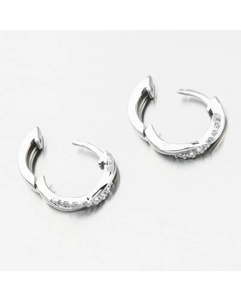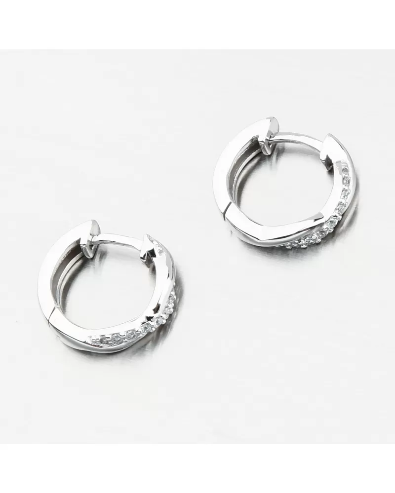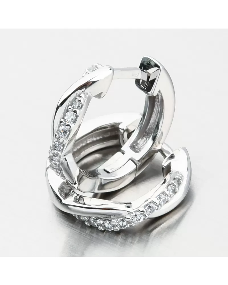 Jemné, ale výrazné kroucené náušnice. Ozdoba tvoří dvě propletené linie, z toho jedna je ve vysokém lesku a druhá je osazena zářivými zirkony. Zirkony jsou briliantového brusu, zajišťuje maximální brilanci vybroušených facet, dokonale odráží světlo a neuvěřitelně září z každého úhlu pohledu. Kruhy patří k nestárnoucím doplňkům, které musí mít každá žena ve své šperkovnici.