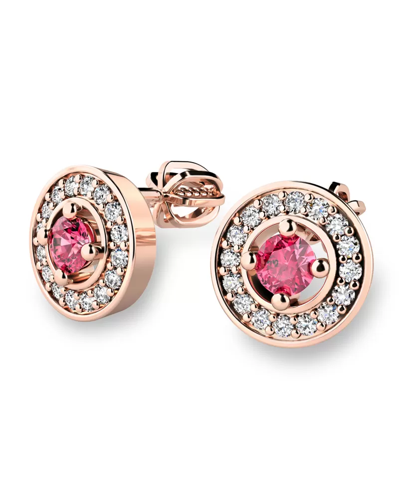 Nádherné luxusní dámské náušnice pecky osázené středovým turmalínem a diamanty budou ideálním dárkem pro každou ženu. Náušnice jsou vyrobeny z růžového čtrnáctikarátového zlata - 585/1000 v lesklé povrchové úpravě. Vsazené diamanty jsou vybroušeny dokonalým briliantovým brusem, díky kterému dokonale odráží světlo a jejich brilance neuvěřitelné září z každého úhlu pohledu! Všechny kameny jsou pevně uchyceny krapnami. Vsazování diamantů a drahých kamenů provádějí naši nejzkušenější mistři zlatníci ručně pod mikroskopem s přesností na 0,01mm a proto nehrozí vypadnutí kamínků jako to bývá u strojně vyráběných náušnic. Celé náušnice působí dokonalým a luxusním dojmem! Náušnice se zapínají na šroubek. Šroubek pro balónek je umístěný cca 2 mm pod horní okraj náušnice a tedy krásně zakrývá dírku v uchu.