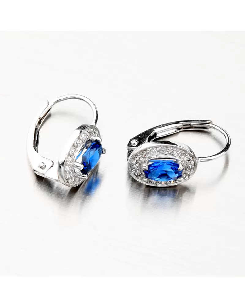 Náušnice se safírem a zirkony z bílého zlata 52GZ-8049-B-SAF-KL