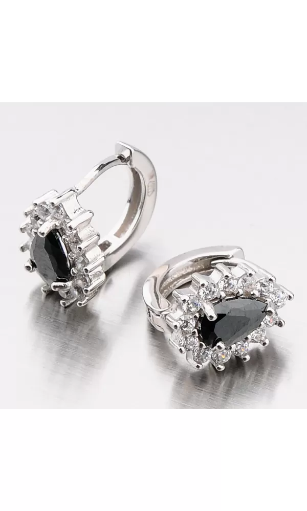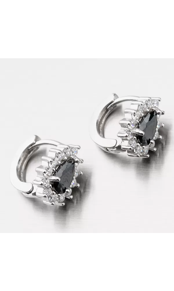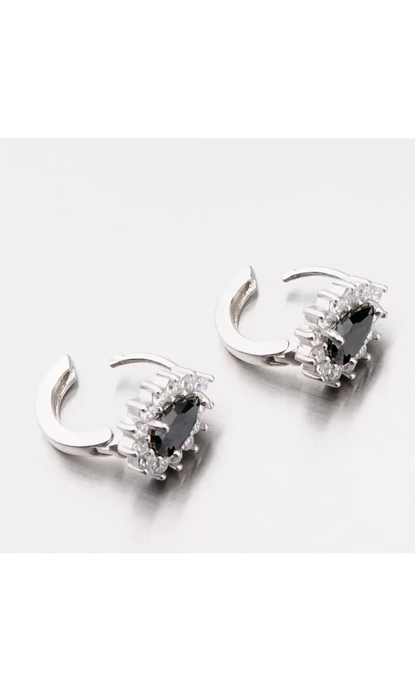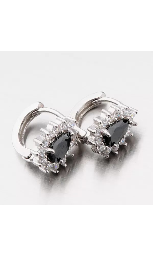 Tyto náušnice si oblíbíte. Nejen pro jejich slušivý tvar ale také pro nekonečný třpyt zirkonů. Náušnice mají ozdobu ve tvaru kapky, která je zdobená stejně broušeným zirkonem v černé barvě, který je umístěn uprostřed ozdoby. Kolem velkého zirkonu jsou pečlivě vsazeny menší zirkony v briliantovém brusu. Třpyt a záře zirkonů se násobí každým vaším pohybem. Náušnice se zapínají na klapku.