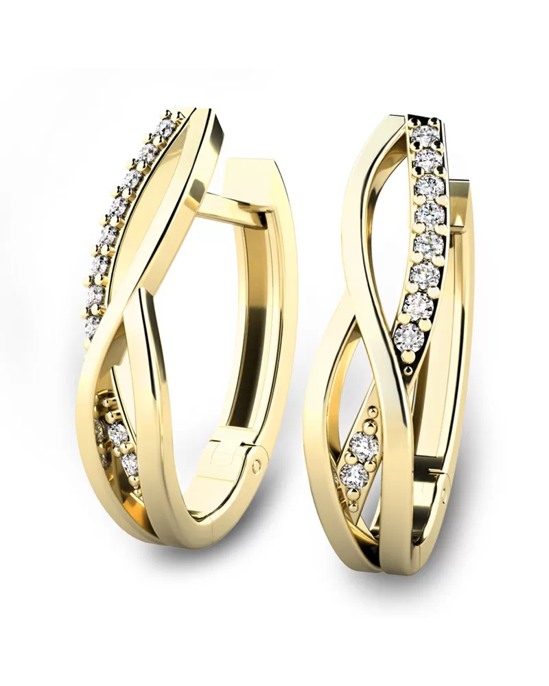 Tyto náušnice jsou vhodné pro každodenní nošení i na společenské akce a budou slušet každé ženě! Jsou vyrobeny ze žlutého čtrnáctikarátového zlata - 585/1000 v lesklé povrchové úpravě. V náušnicích je vsazeno dvacet kulatých diamantů v briliantovém brusu, který zajišťuje maximální brilanci vybroušených facet, dokonale odráží světlo a krásně září z každého úhlu pohledu! Vsazování diamantů provádějí naši nejzkušenější mistři zlatníci ručně pod mikroskopem s přesností na 0,01mm a proto nehrozí vypadnutí kamínků jako to bývá u strojně vyráběných šperků. Náušnice působí jemným a elegantním dojmem.