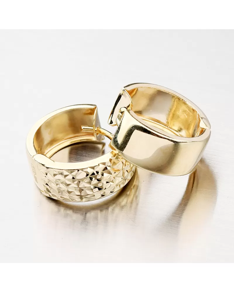 Velmi slušivé a oboustranné náušnice kruhy si zamilujete. Velikost náušnic je velmi praktická na to, aby jste je mohla nosit každý den. Přední strana kroužků je zdobená gravírováním. Facety jsou zhotoveny diamantovým nástrojem, který dodává vzniklým facetám maximální lesk, díky kterému dokonale odráží světlo a mají krásnou brilanci ze všech úhlů pohledu! Zadní strana náušnic je hladká leštěná do vysokého lesku. U tohoto modelu můžete střídat strany náušnice podle toho jaké šperky s nimi nakombinujete.