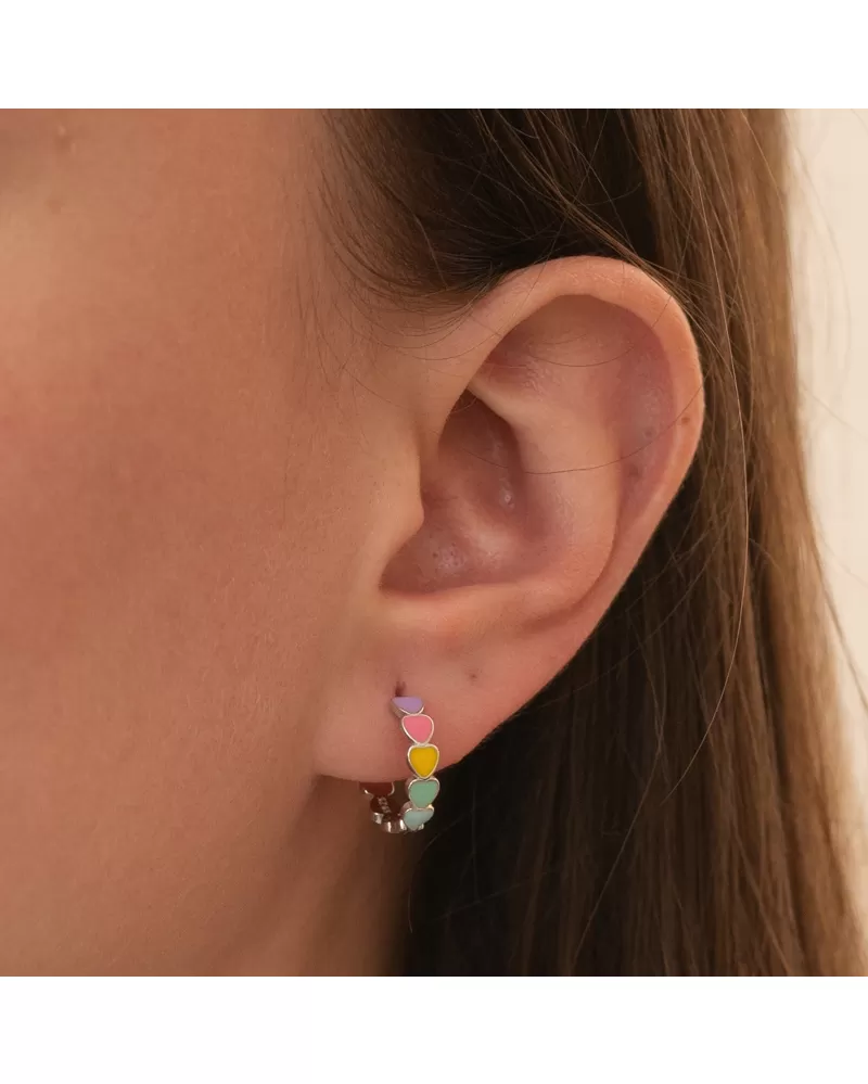 Stříbrné kruhy s barevnými srdíčky PKL-2234