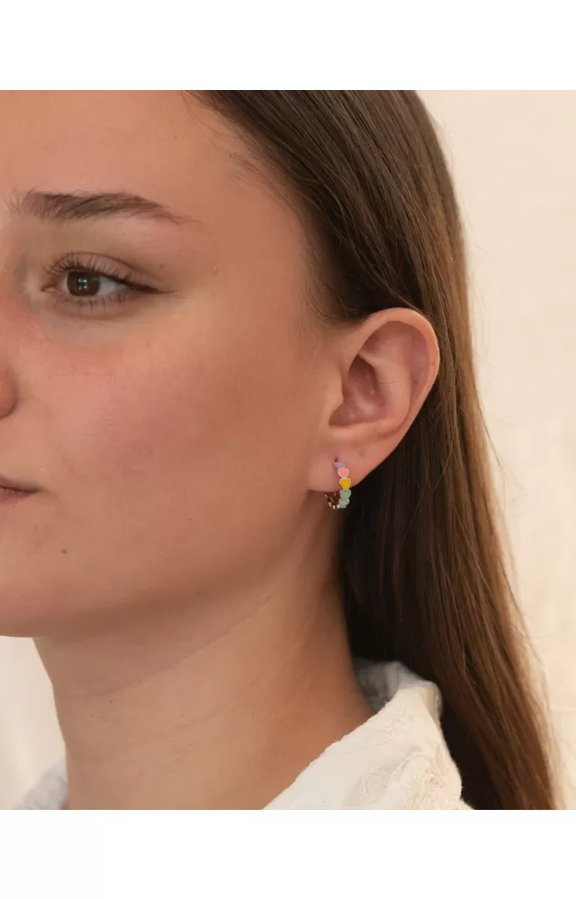 Roztomilé stříbrné náušnice pro slečny, které se rády parádí. Tyto náušnice zdobí barevná srdíčka, které jsou ze přední i zadní strany. Každé srdíčko má jinou barvu, jsou tak roztomilé a zářivé.