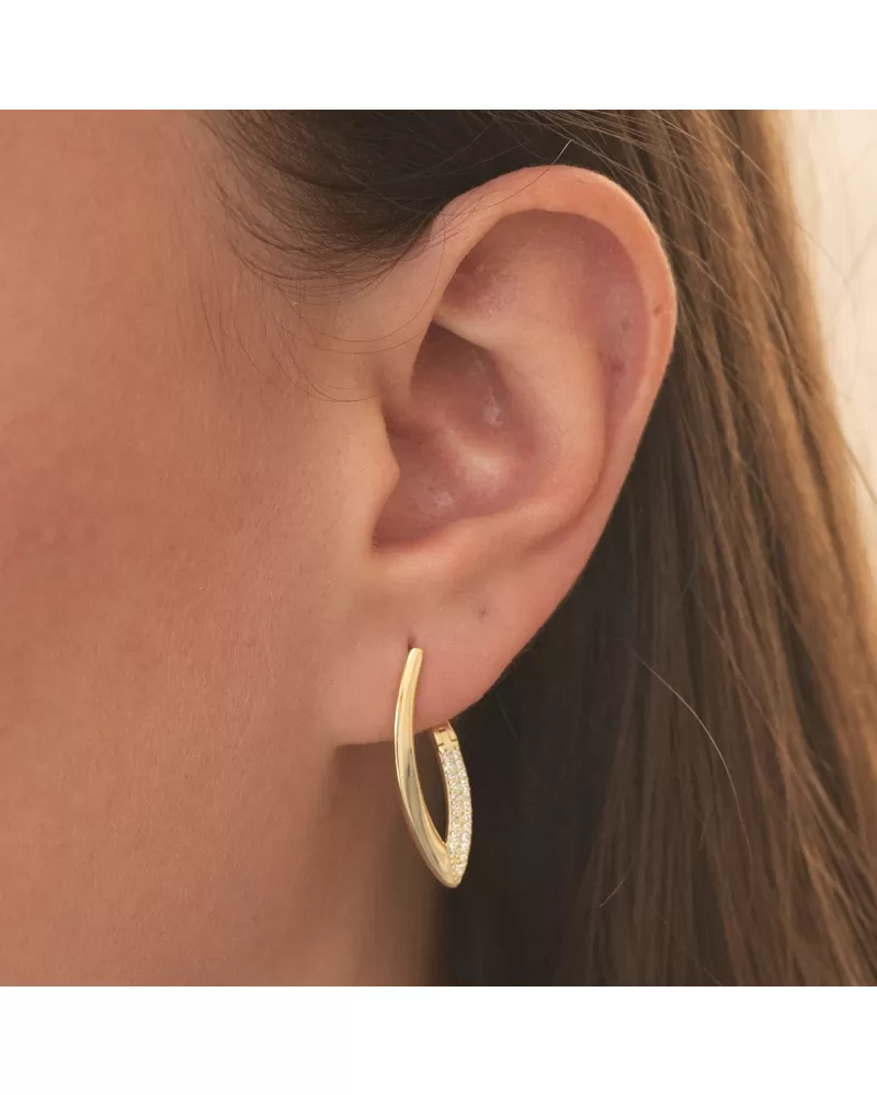 Pozlacené stříbrné náušnice ve tvaru písmene V zdobené dvěma řadami zářivých zirkonů. Zirkony jsou briliantového brusu, který zajišťuje maximální brilanci vybroušených facet, dokonale odráží světlo a neuvěřitelně září z každého úhlu pohledu. Náušnice mají krásný zářivý vzhled, dodávají eleganci v každém směru.