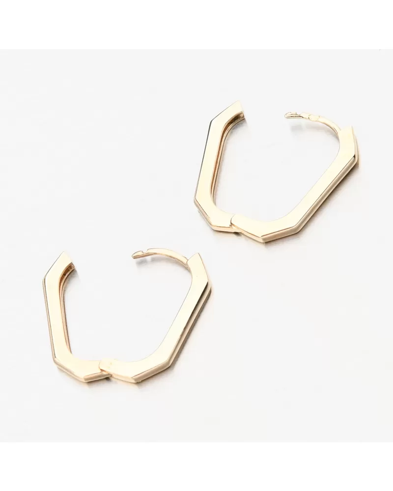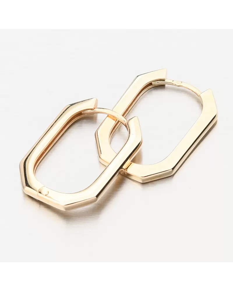 Netradičně zpracované visací náušnice. Tyto zlaté náušnic jsou hranatého tvaru, který přinese trochu hravosti a odvahy. Náušnice budou vhodné pro všechny příležitosti, kde bude vaším přáním zazářit. Náušnice vypadají fantasticky!