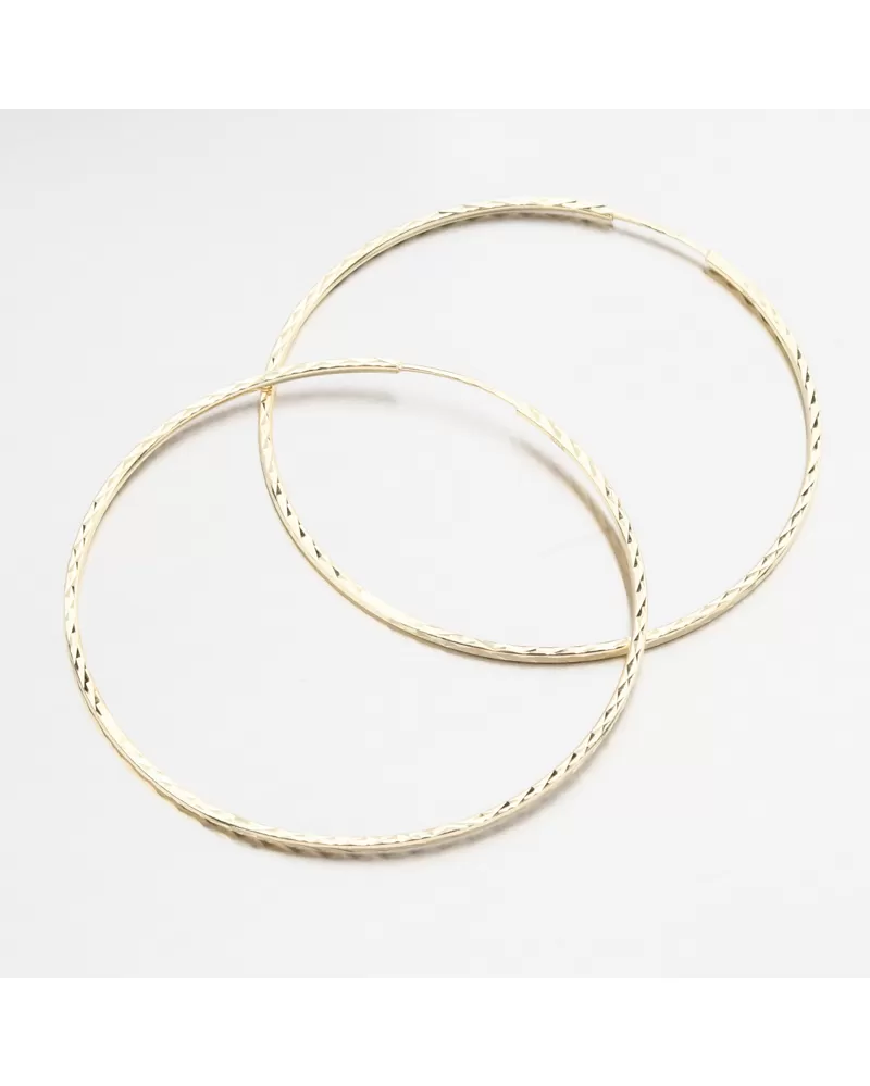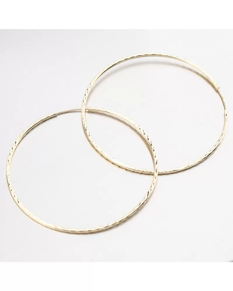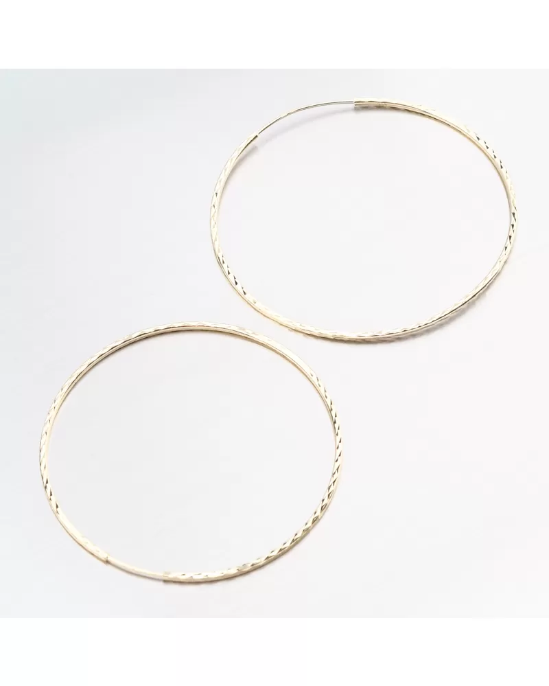 Objevte kouzlo nadčasové elegance s těmito nádhernými zlatými kruhovými náušnicemi. Jejich výrazný průměr 55 mm upoutá na první pohled, zatímco jemně rytý povrch dodává šperku rafinovaný třpyt a jedinečný charakter. Náušnice jsou zdobené diamantovým gravírováním, při kterém diamantový hrot rycího nástroje zajišťuje opravdu vysoký lesk a brilanci ze všech úhlů. Lehké provedení, pouze 3,75 g zajišťuje maximální pohodlí při nošení - od rána do večera. Díky univerzálnímu designu se tyto kruhy dokonale hodí k elegantním šatům, ale i k ležérnímu outfitu, kdy stačí jediný doplněk, aby celý vzhled získal šmrnc. Tyto náušnice jsou symbolem sebevědomí, ženskosti a stylu. Stanou se Vaším oblíbeným šperkem, který si oblíbíte na každodenní nošení i speciální příležitosti. Dopřejte si luxusní náušnice, které Vám dodají jiskru a eleganci v každé situaci.