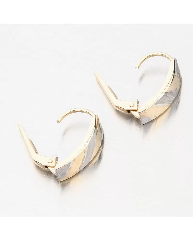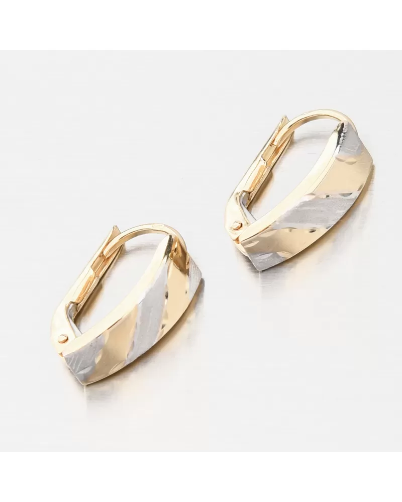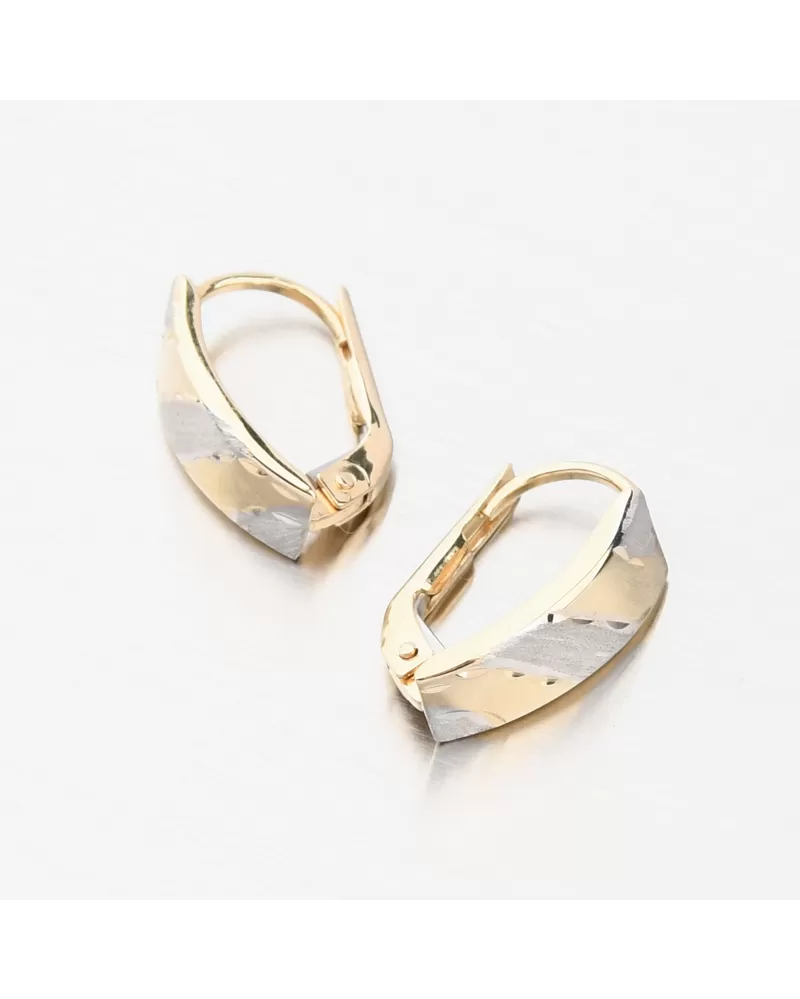 Elegantní zlaté náušnice s nádhernými odlesky. I když náušnice nemají žádné zirkony nádherně se třpytí a to díky facetám, kterými jsou na přechodech mezi žlutou a bílou barvou zlata. Facety jsou lesklé plošky dělané za pomocí diamantového hrotu a dodávají šperku maximální lesk a brilanci ze všech úhlů. Žlutá barva zlata je ve vysokém lesku, bílá barva je v matu.