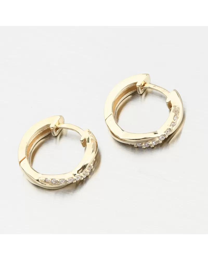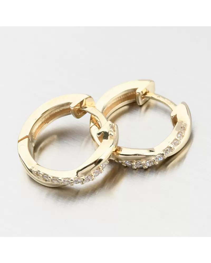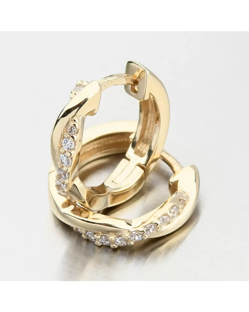 Jemné, ale výrazné kroucené náušnice. Ozdoba tvoří dvě propletené linie, z toho jedna je ve vysokém lesku a druhá je osazena zářivými zirkony. Zirkony jsou briliantového brusu, zajišťuje maximální brilanci vybroušených facet, dokonale odráží světlo a neuvěřitelně září z každého úhlu pohledu. Kruhy patří k nestárnoucím doplňkům, které musí mít každá žena ve své šperkovnici.