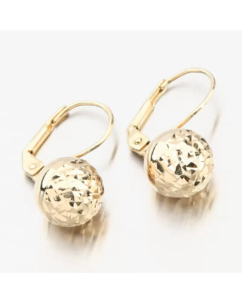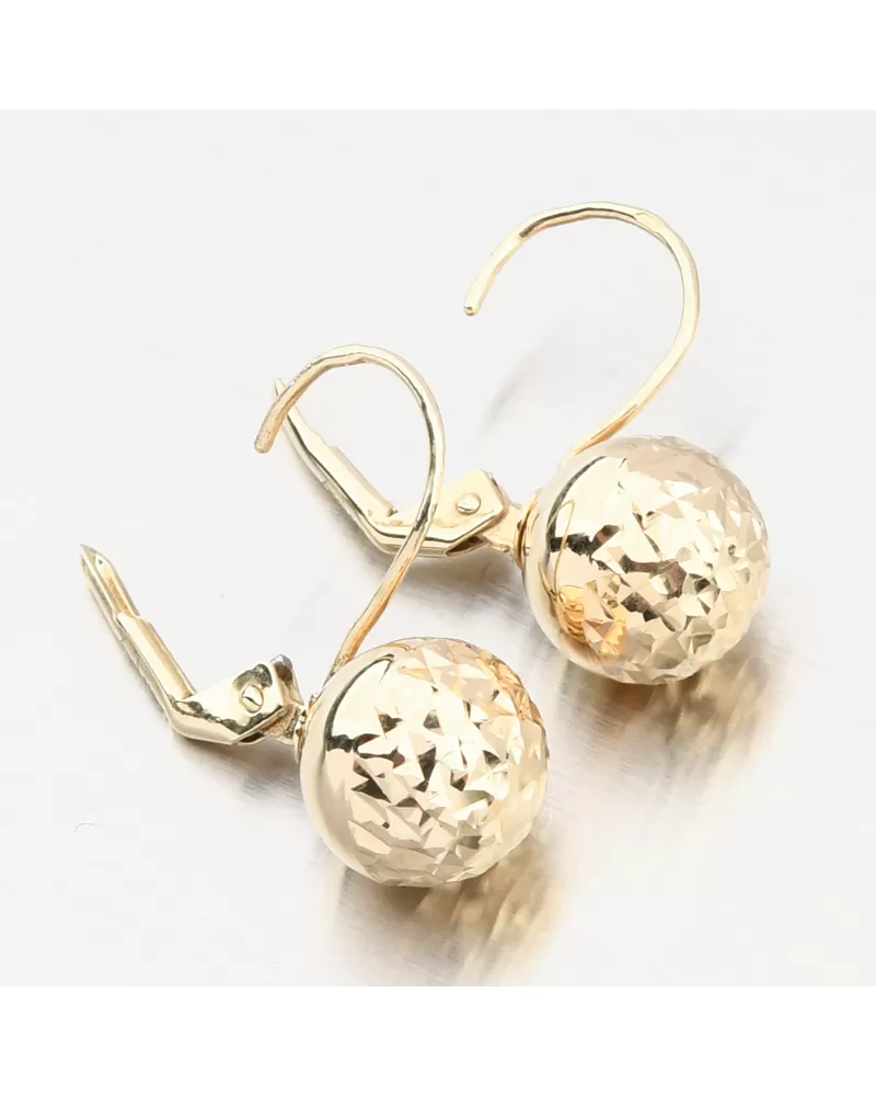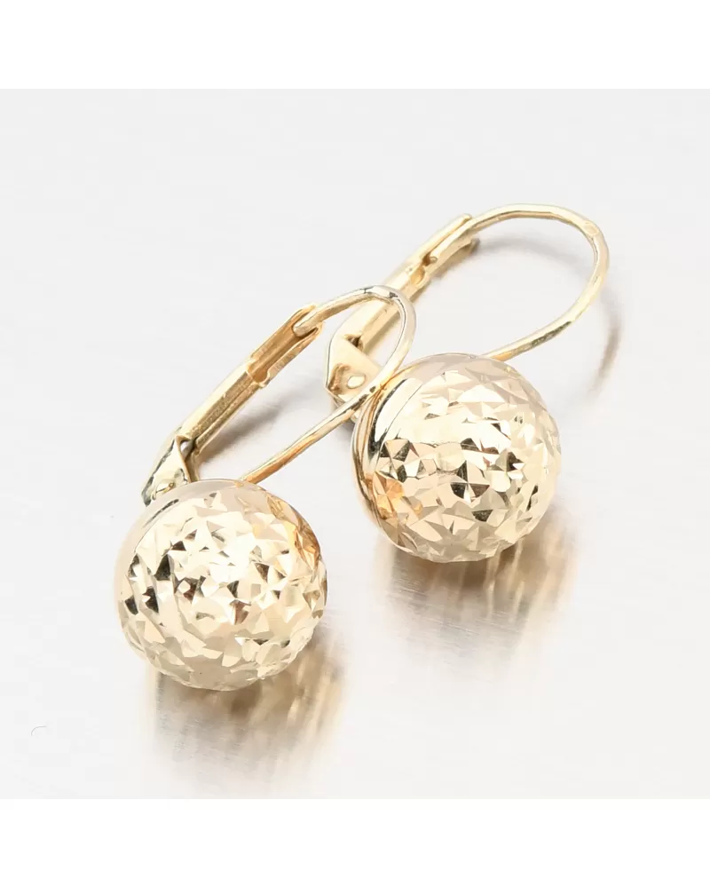 Krásné dámské náušnice rozzáří oči nejedné z vás. Náušnice jsou zdobeny přívěskem ve tvaru kuličky, která je zdobena a zvýrazněna nádherným gravírováním a je ve vysokém lesku. Gravírování je provedeno diamantovým rycím hrotem, který zajišťuje nejvyšší možný lesk gravírovaných facet. Kulička je připevněna k náušnice napevno, což bude pro řadu žen velkým plusem.