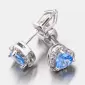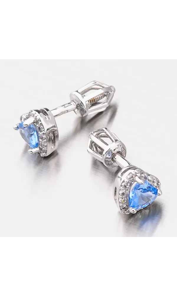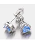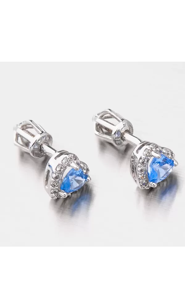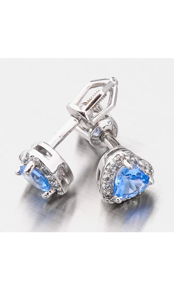 Zlaté náušnice pecky ve tvaru srdce potěší ženy i dívky. Náušnice zdobí syntetický akvamarín, který je broušen do tvaru srdce. Kámen je precizně vsazen do zlata a uchycen třemi krapnami. Kolem syntetického akvamarínu jsou vsazeny zirkony v briliantovém brusu. Tento brus zajišťuje zirkonům brilanci pravých diamantů. Náušnice pecky zapínají na šroubek.