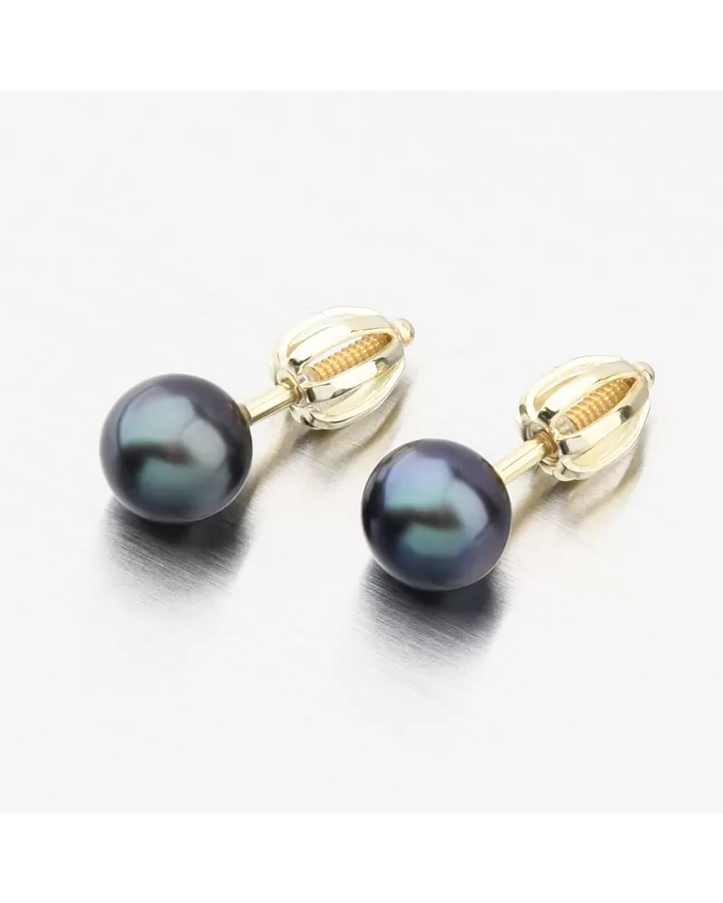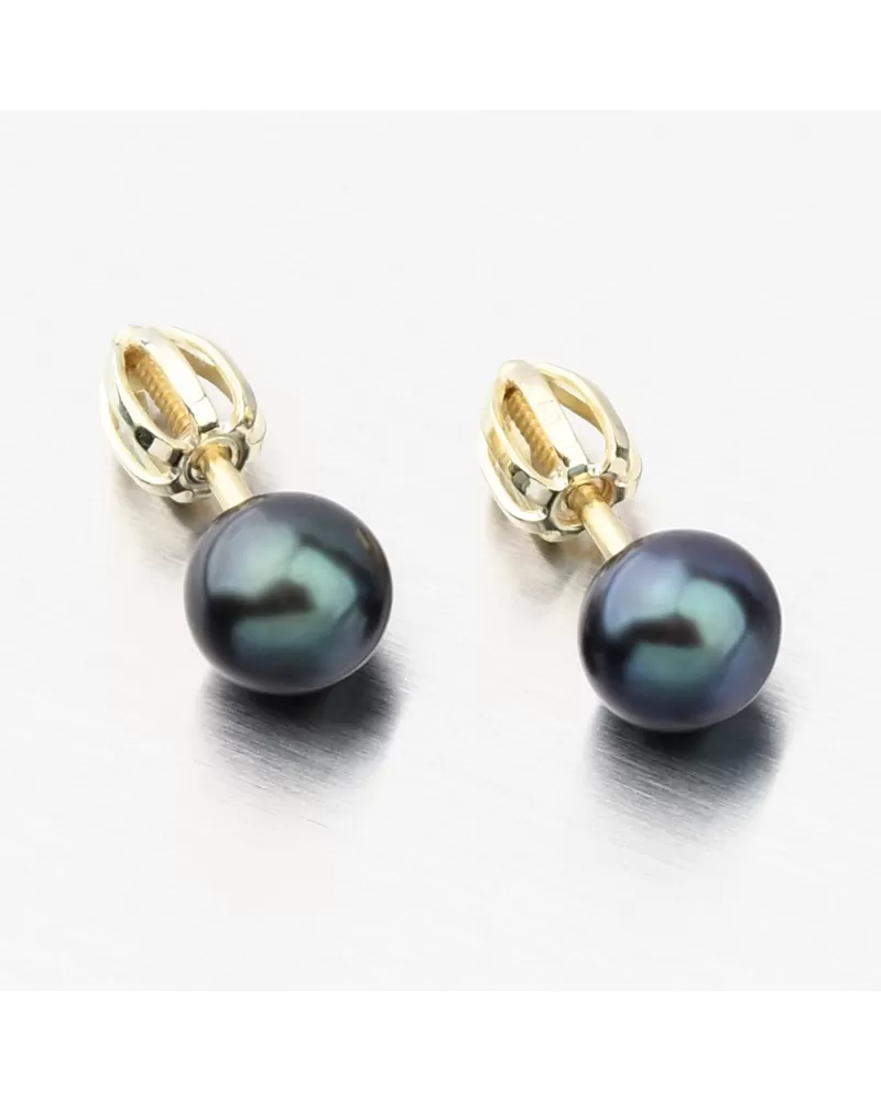 Perlové náušnice jsou opravdovou klasikou a sluší každé ženě. Půvabné zlaté náušnice nadchnou jemným provedením. Náušnice jsou typově pecky a ozdobou je drobná černá umělá perla. Perly jsou symbolem krásy a luxusu, ale také štěstí a úspěchu a spokojenosti. Dopřejte si tento šperk, který nesmí chybět ve Vaší šperkovnici.