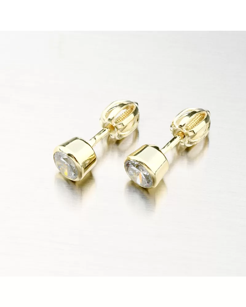 Jednoduché a decentní zlaté náušnice pecky. Náušnice zdobí třpytivý zirkon o velikosti 5 mm. Zirkon je briliantového brusu, který zajišťuje maximální brilanci vybroušených facet, dokonale odráží světlo a neuvěřitelně září z každého úhlu pohledu.