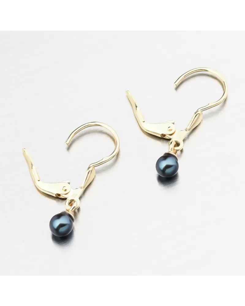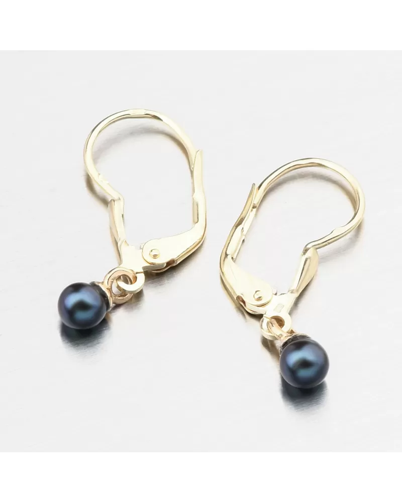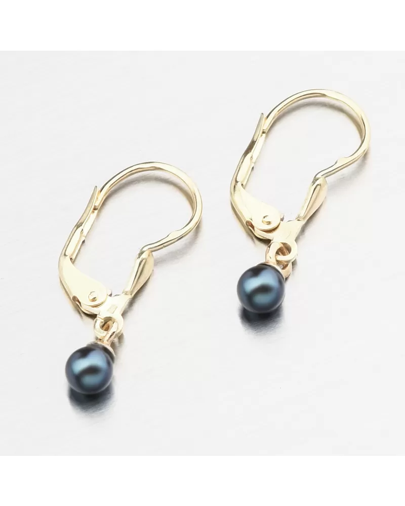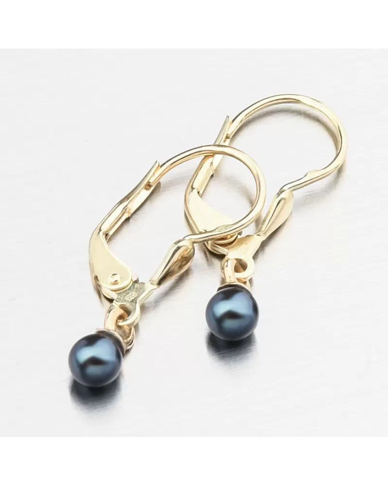 Jednoduché, přesto okouzlující. Tyto náušnice ze žlutého zlata zdobí syntetické černé perly, které vynikají svou sametově temnou barvou a jemným leskem. Dokonale kontrastují se zlatem, čímž vytvářejí harmonii elegance a originality. Černé perly jsou symbolem síly, nezávislosti a ženského sebevědomí. Náušnice mají upevněnou perlu na kroužku a ta se jemně pohybuje. Perla je černé barvy a je syntetická. Perly jsou všeobecně symbolem krásy a luxusu, ale také štěstí a úspěchu a spokojenosti. Dopřejte si tento šperk, který nesmí chybět ve Vaší šperkovnici.