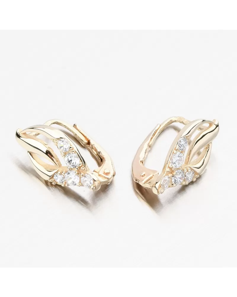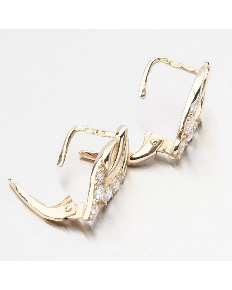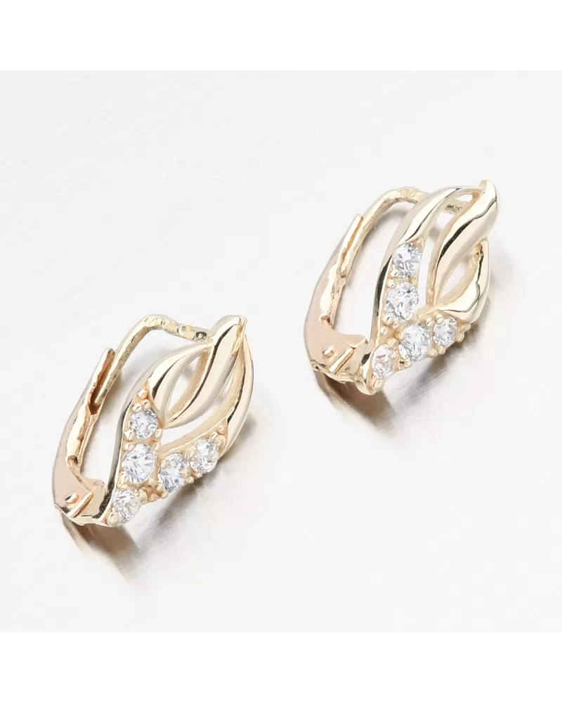 Nádherné zlaté náušnice, které zaujmou precizním provedením a kvalitním zpracováním. Náušnice mají ozdobu ve tvaru lístku, kde je spodní část osazena zářivými zirkony. Zirkony jsou briliantového brusu, který propůjčuje zirkonům brilanci pravých diamantů, který podpoří i konstrukce náušnic. Konstrukce je navržena tak aby dokonale prostupovalo světlo kolem zirkonů.