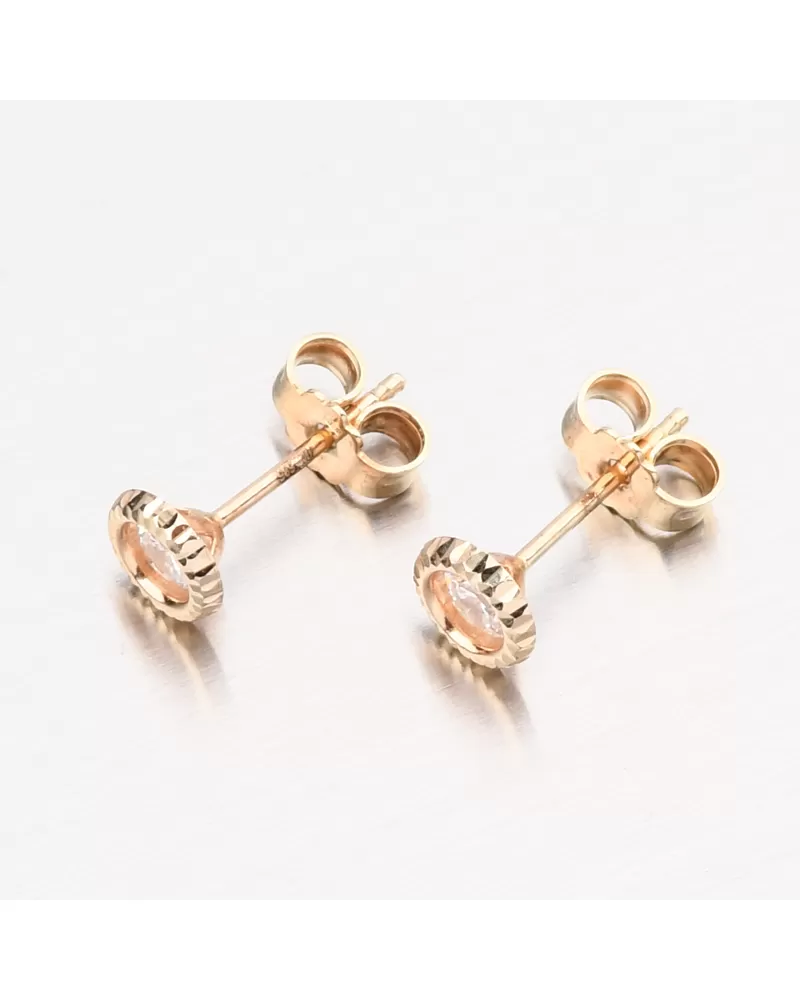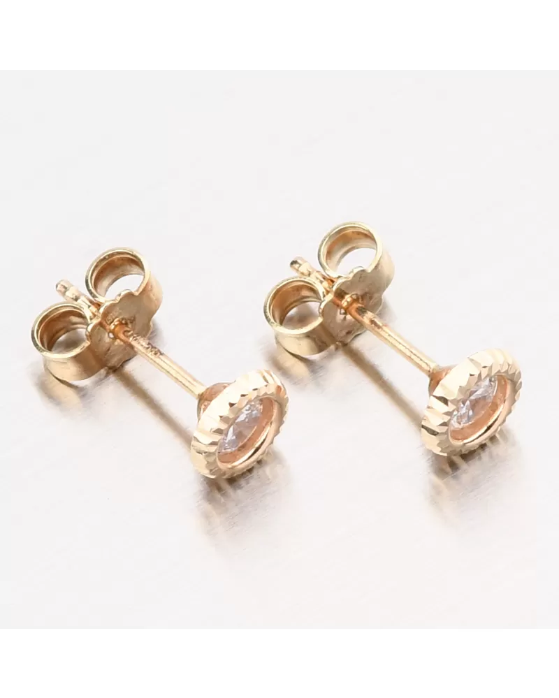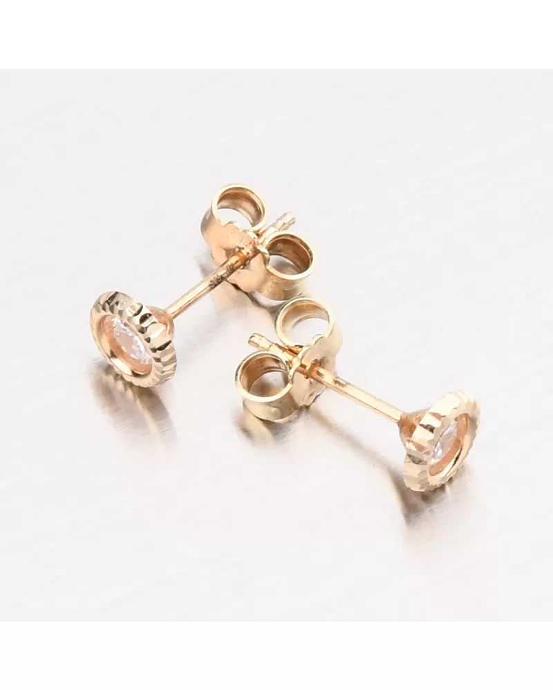 Decentní náušnice pecky ze žlutého zlata Vás rozzáří díky prvotřídnímu zirkonu v briliantovém brusu. Briliantový brus zajišťuje maximální brilanci vybroušených facet, dokonale odráží světlo a neuvěřitelně září z každého úhlu pohledu. Navíc je ozdoba náušnic okolo zirkonu zdobená nádhernými facetami - gravírováním. Gravírování je za pomocí diamantového hrotu, který dodává šperku maximální lesk a brilanci ze všech úhlů.