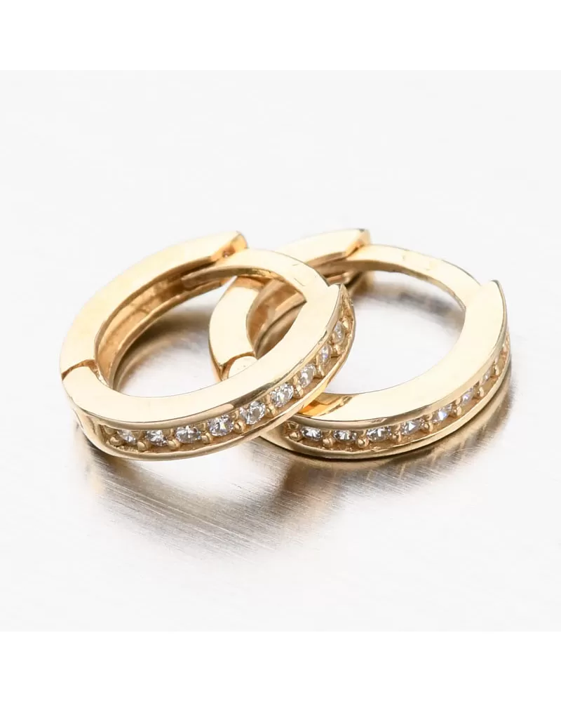 Něžné náušnice kroužky s pevnou konstrukcí si zamilujete vy i vaše malá parádnice. Kroužky jsou velice praktické a velmi pohodlné a to je přesně to co potřebujete. Tento model zdobí přední strana precizně osázená zirkony v briliantovém brusu. Zirkony jsou v bílé barvě. Zadní strana je hladká a pokud vaší princeznu zirkony omrzí dají se kroužky nosit i zadní stranou dopředu.