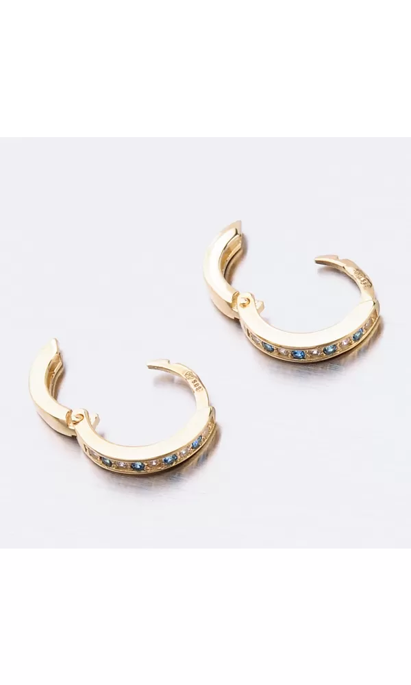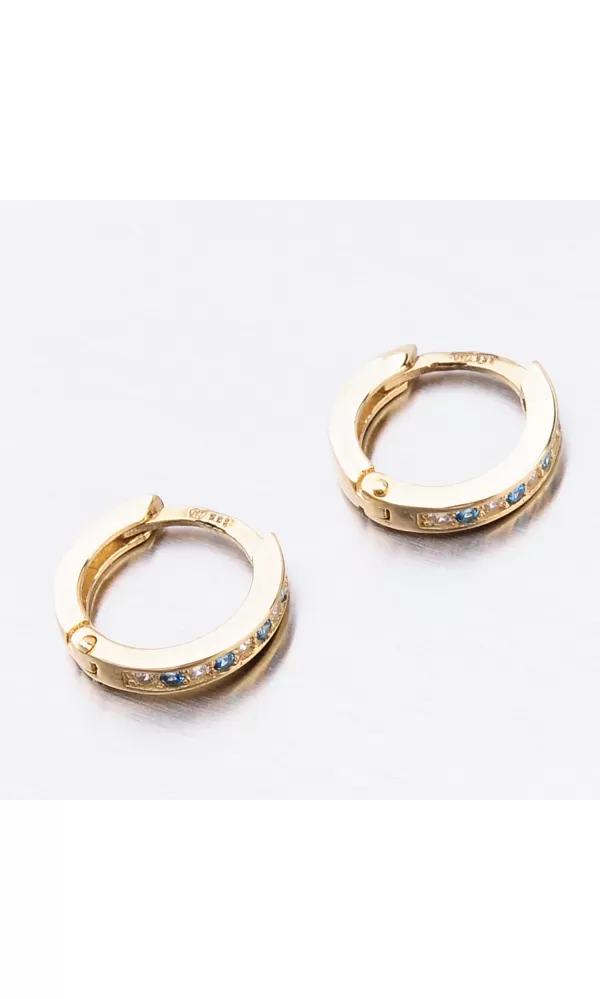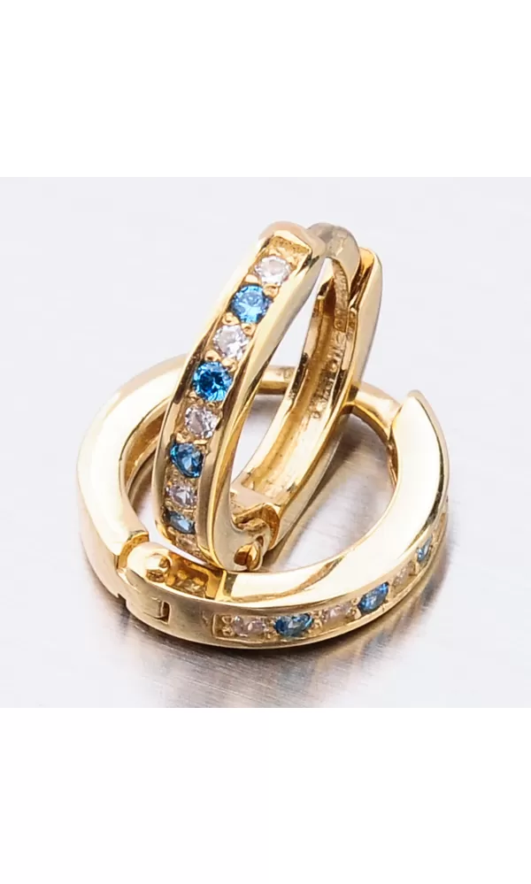Něžné náušnice kroužky s pevnou konstrukcí si zamilujete vy i vaše malá parádnice. Kroužky jsou velice praktické a velmi pohodlné a to je přesně to co potřebujete. Tento model zdobí přední strana precizně osázená zirkony v briliantovém brusu. Zirkony se pravidelně střídají v modré a bílé barvě. Zadní strana je hladká a pokud vaší princeznu zirkony omrzí dají se kroužky nosit i zadní stranou dopředu.