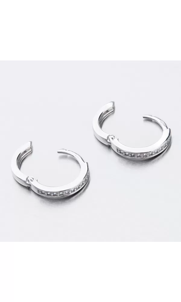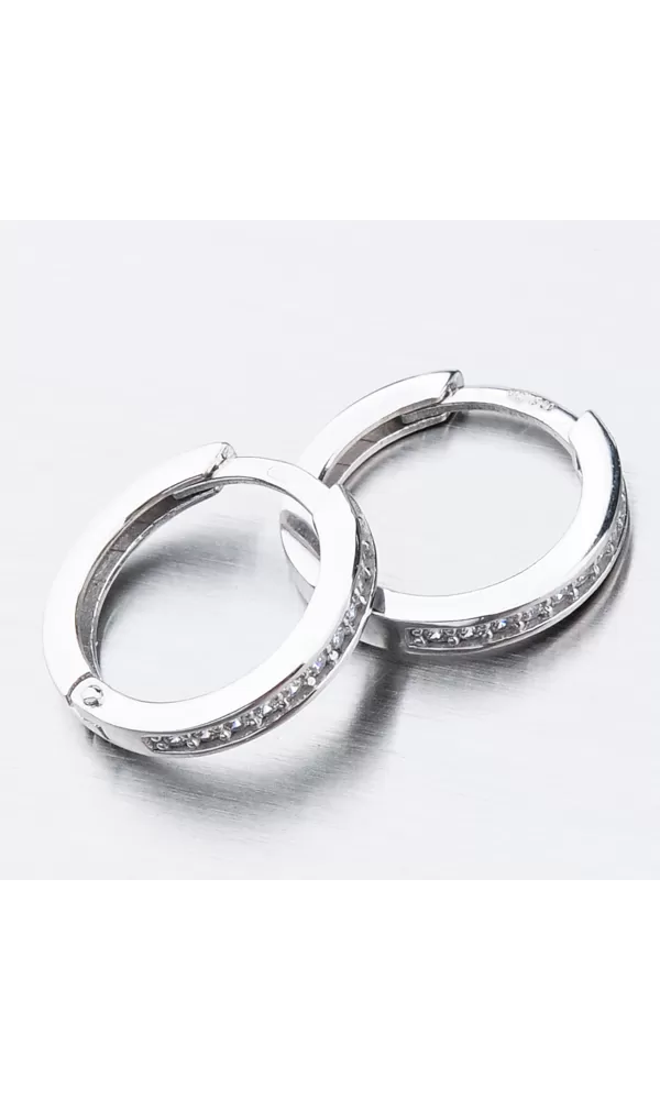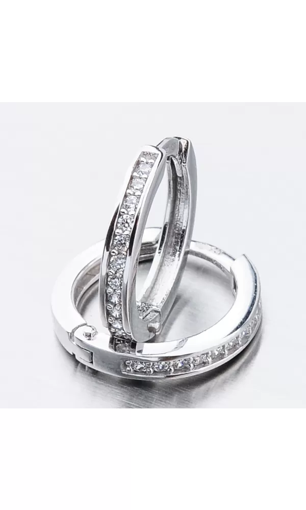 Něžné náušnice kroužky s pevnou konstrukcí si zamilujete vy i vaše malá parádnice. Kroužky jsou velice praktické a velmi pohodlné a to je přesně to co potřebujete. Tento model zdobí přední strana precizně osázená zirkony v briliantovém brusu. Zirkony jsou v bílé barvě. Zadní strana je hladká a pokud vaší princeznu zirkony omrzí dají se kroužky nosit i zadní stranou dopředu.