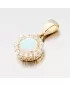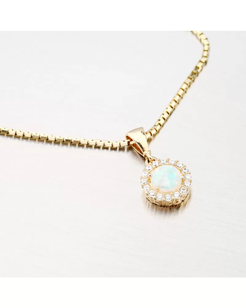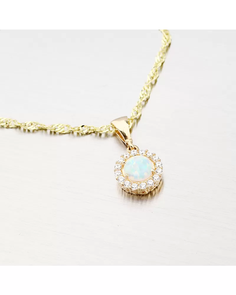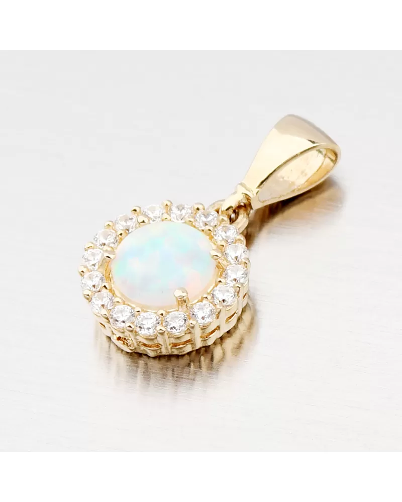 Elegantní přívěsek v kulatém tvaru bude Váš oblíbeným šperkem, který Vám dodá třpyt a lesk. Šperk je v kulatém tvaru a zdobí ho syntetický opál, který hraje všemi barvami. Kolem syntetického opálu jsou precizně vsazeny prvotřídní zirkony v briliantovém brusu.