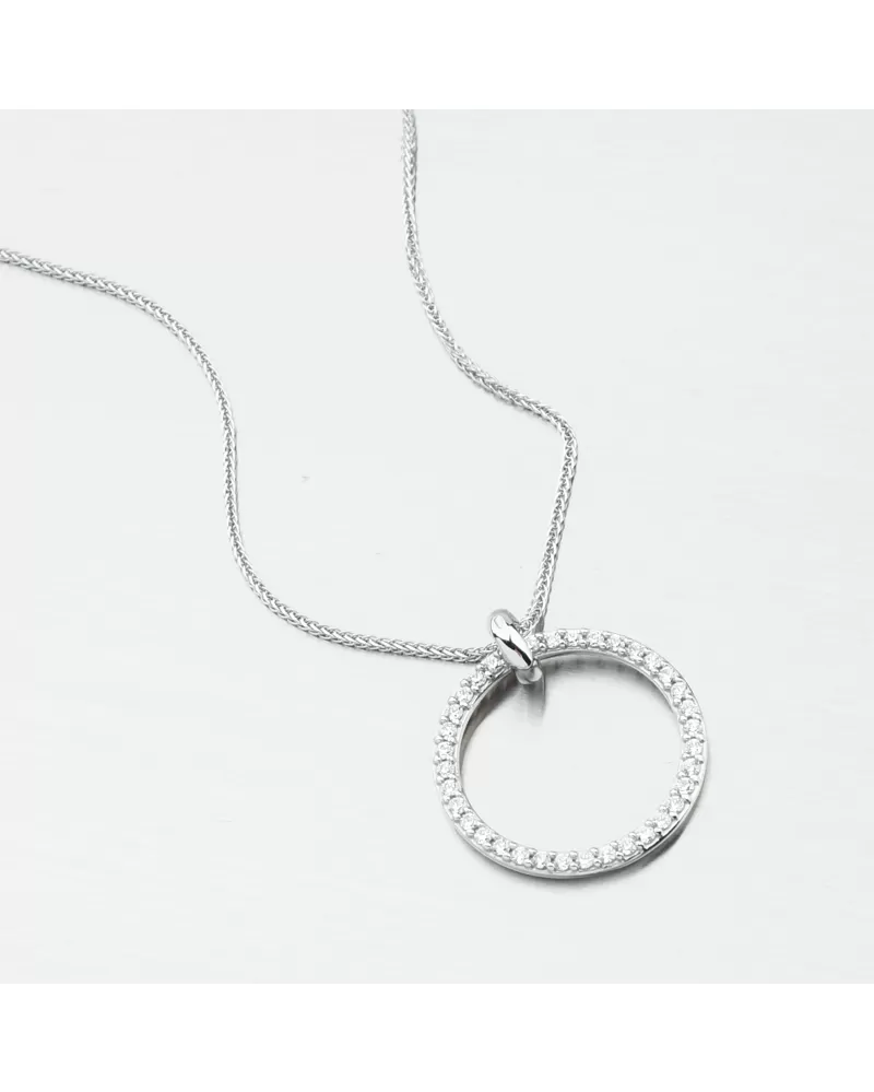 Skvělý tip na dárek, který zaručeně oslní svým elegantním designem. Přívěsek je tvořen z jednoduchého kruhu, který je osázen zirkony v briliantovém brusu. Briliantový brus dodává zirkonům třpyt pravých diamantů. Zirkony jsou fasovány jeden vedle druhého s dokonalou přesností.