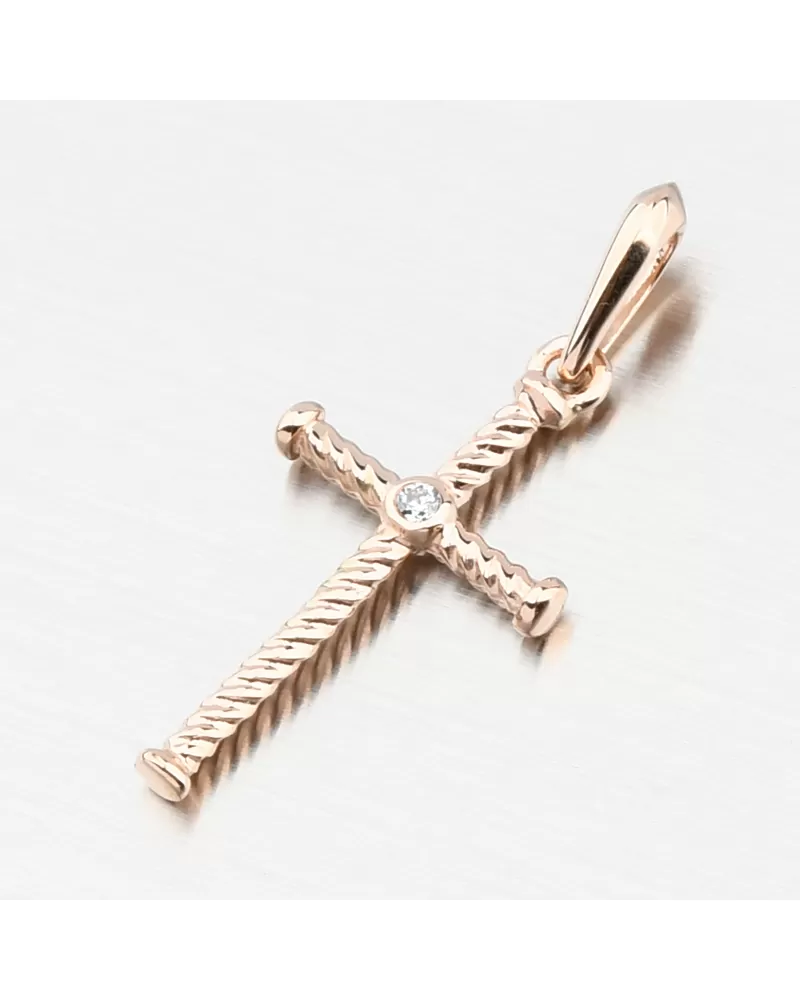 Přívěsek kříž z růžového zlata DZF4197-CV-ZIR