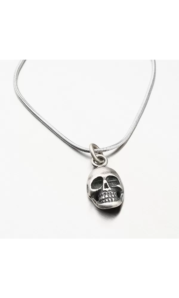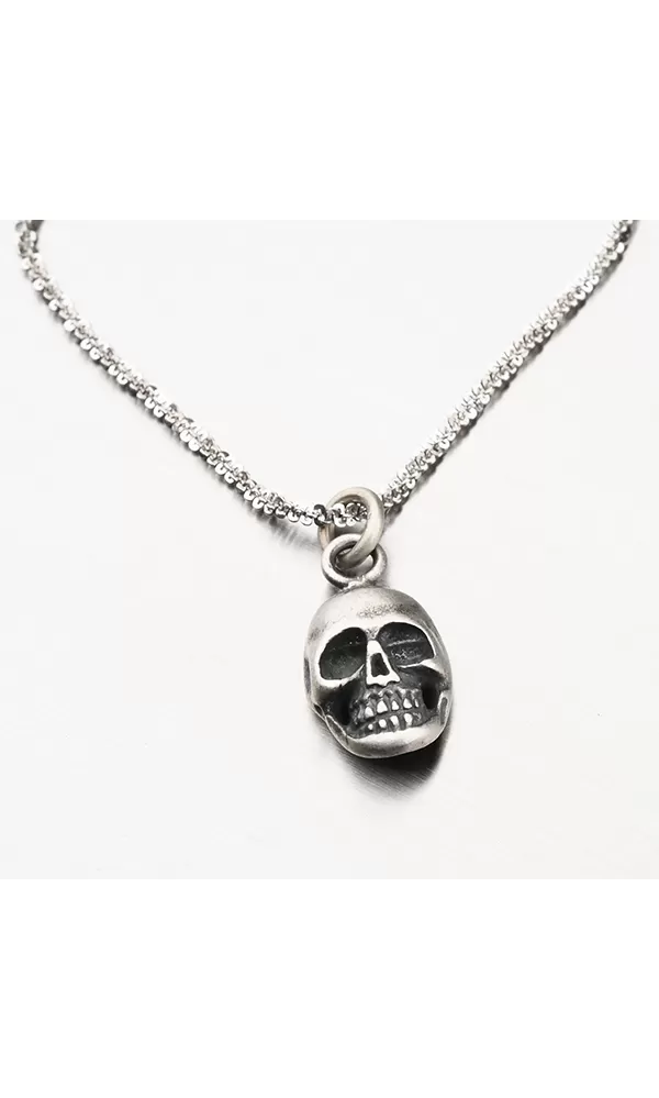 Originální přívěsek ve tvaru lebky. Precizně zpracovaná lebka, která je prostorově zobrazená a celá je v matném provedení s unikatním patinovým povrchem.