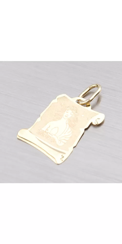 Přívěsek ve tvaru pergamenu s hvězdným znamením - Panna ze žlutého čtrnáctikarátového zlata - 585/1000 v kombinaci lesklé a matné povrchové úpravy.