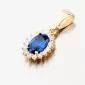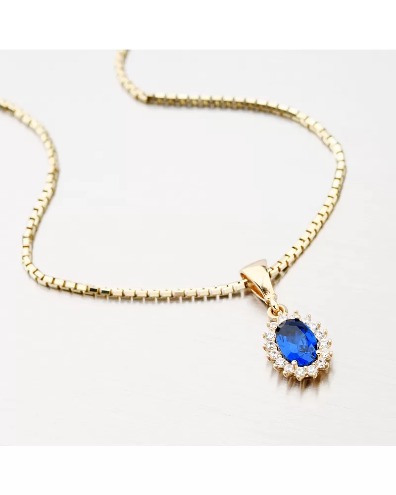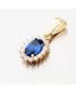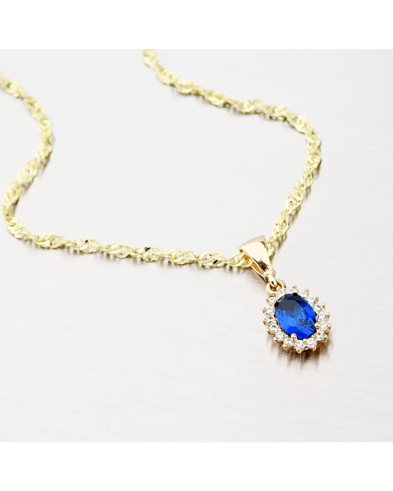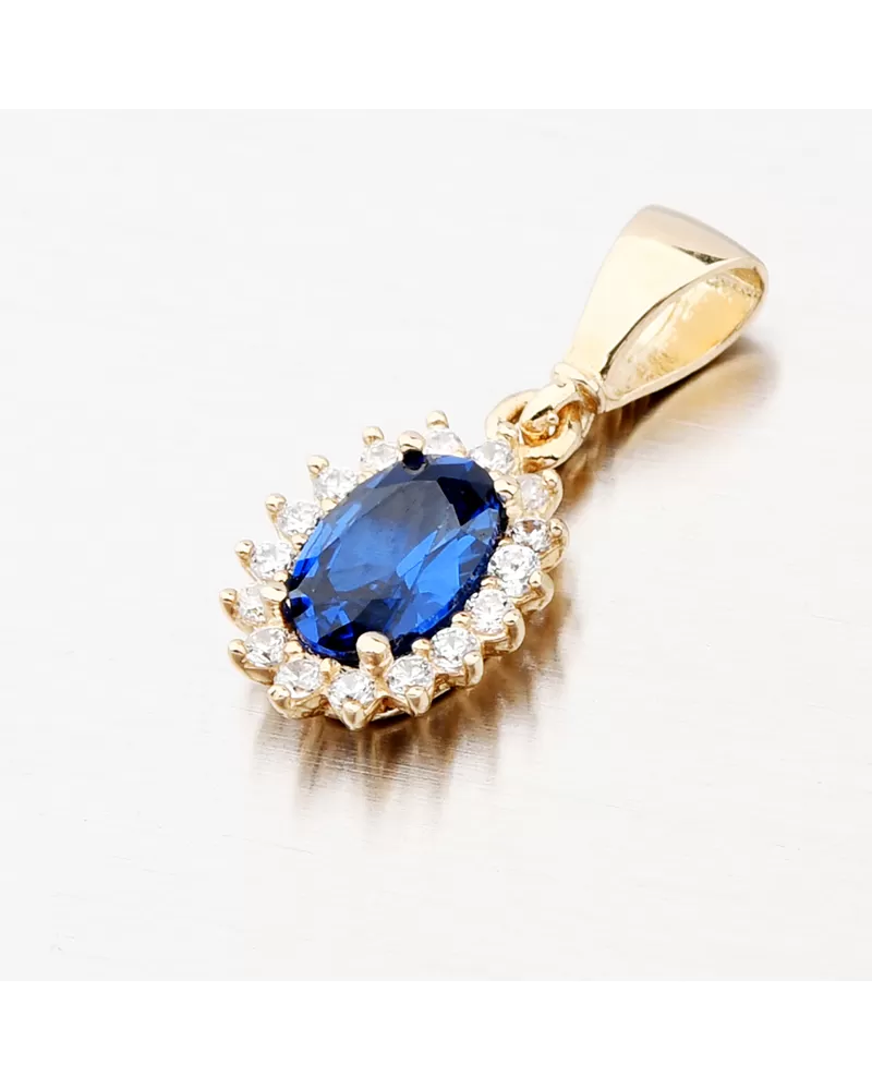 Ozdobte svůj dekolt luxusním přívěskem v oválném tvaru, který zdobí syntetický safír. Syntetický safír je pevně uchycen čtyřmi krapnami a jeho krásu doplňují zirkony v briliantovém brusu.