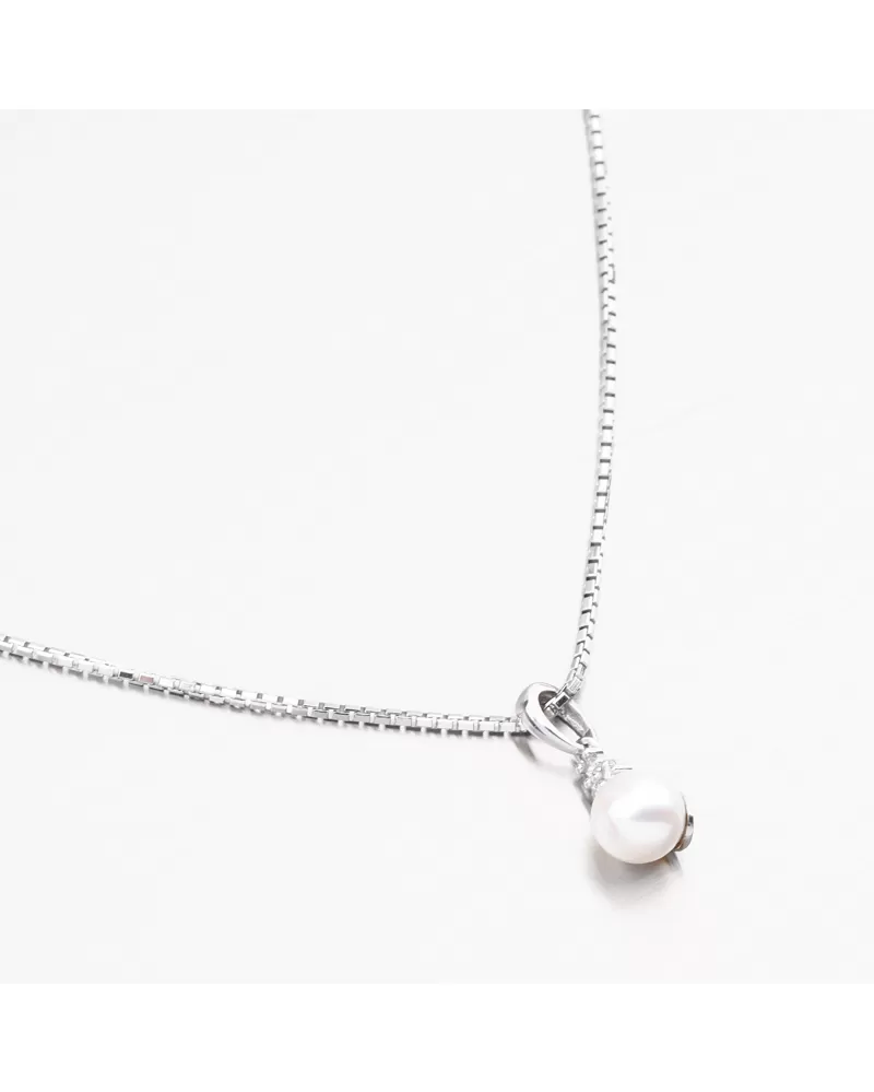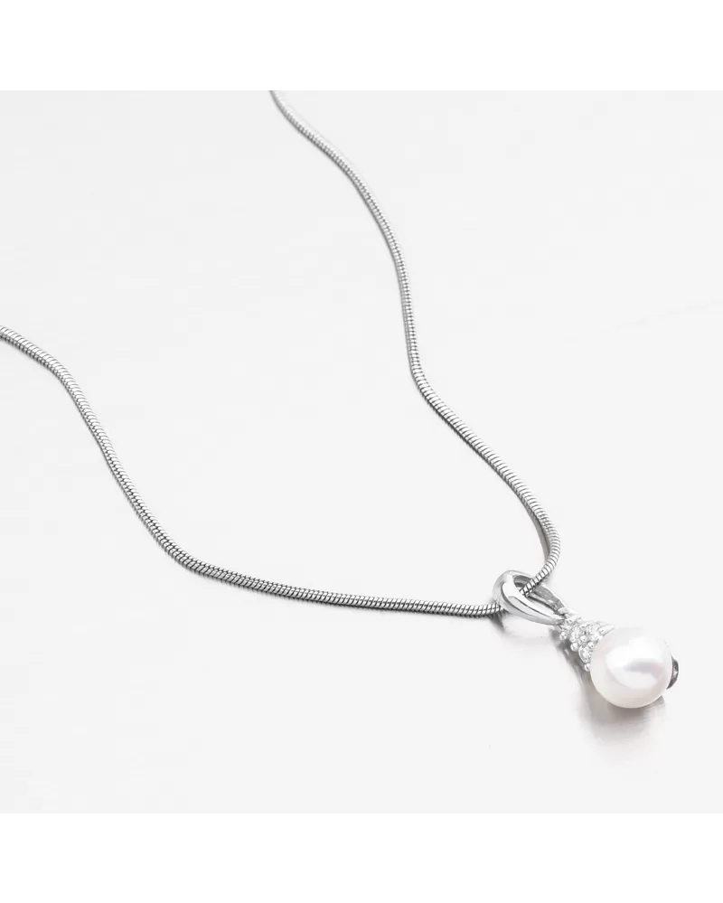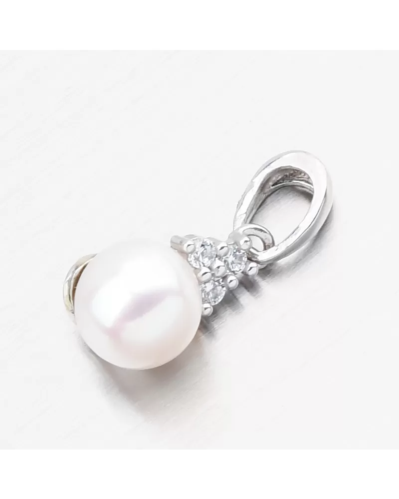 Krásný a elegantní přívěsek s přírodní sladkovodní perlou bílé barvy a poté drobnými zirkony briliantového brusu. Briliantový brus zajišťuje maximální brilanci vybroušených facet, dokonale odráží světlo a neuvěřitelně září z každého úhlu pohledu. V jednoduchosti je krása, zde to rozhodně platí. Tento šperk bude dokonalým dárkem pro ženy, které mají vkus pro decentní šperky.