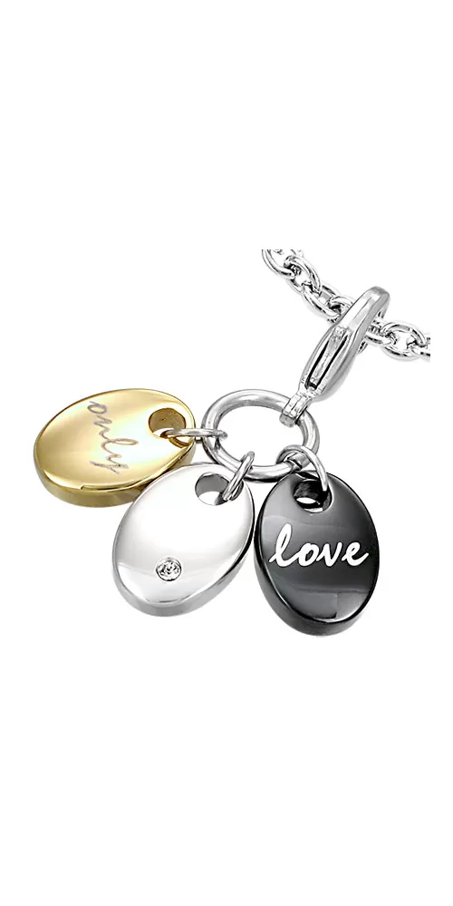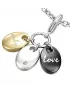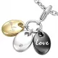 Přívěsek složen ze třech oválků v kombinaci klasické, černé a se zlacením technologií PVD barevné variantě vyrobený z chirurgické oceli v lesklé povrchové úpravě.